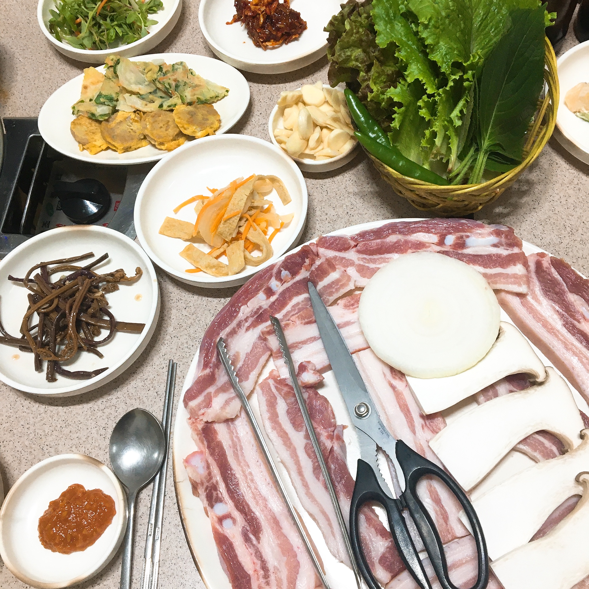 삼겹살의 자태가 보이시나요.. 저 마블링..
