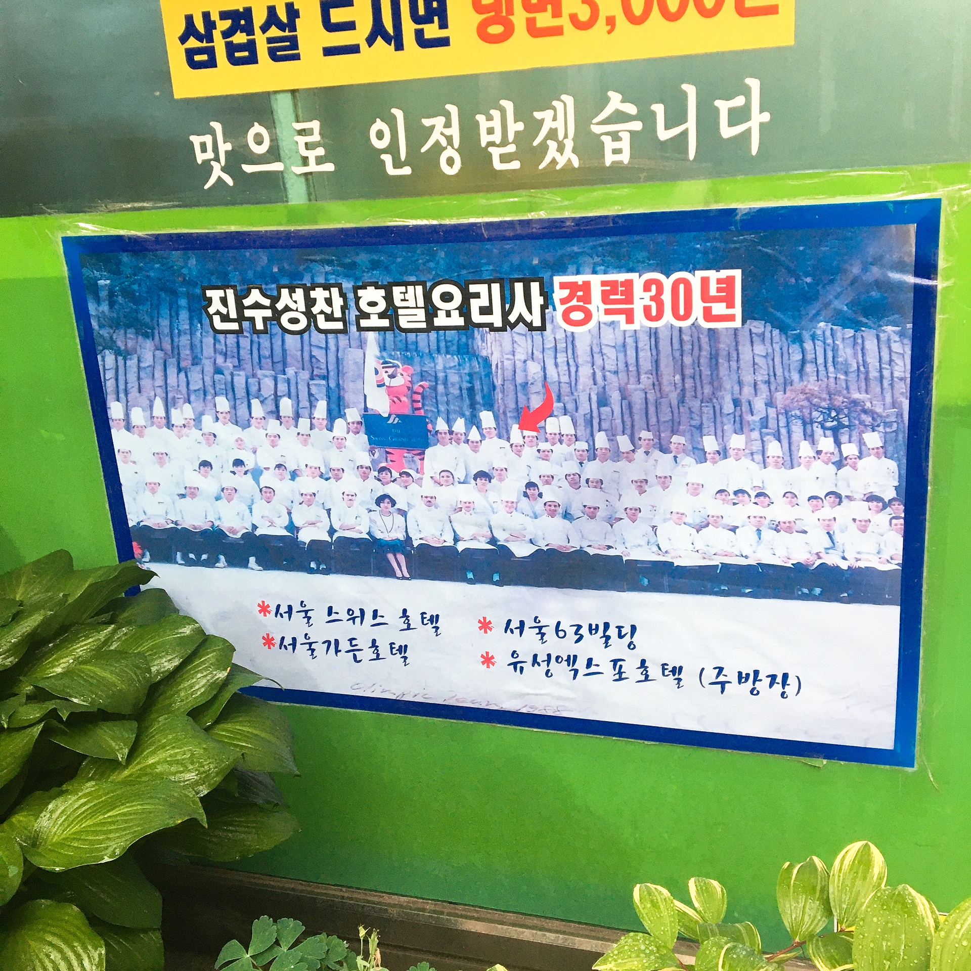 호텔요리사 경력 30년이라고 가게 입구에 딱 홍보중이십니다.