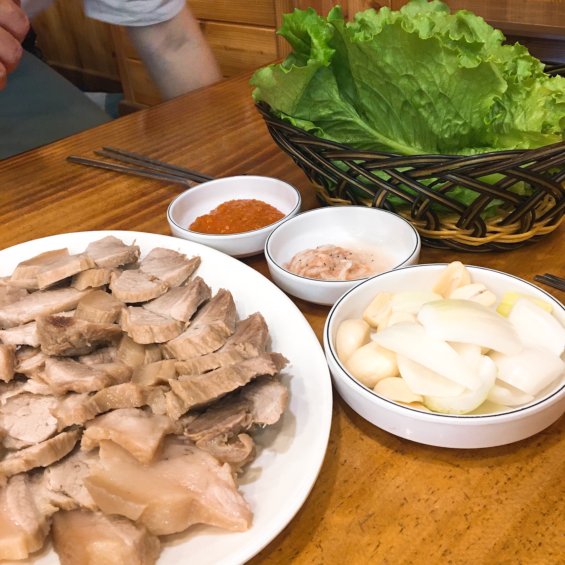 수육은 오겹살로 하시는지 껍데기가 붙어있어 쫄깃쫄깃한 맛이 나는게 좋았고, 돼지누린내가 나지 않는 맛있는 수육이었습니다.