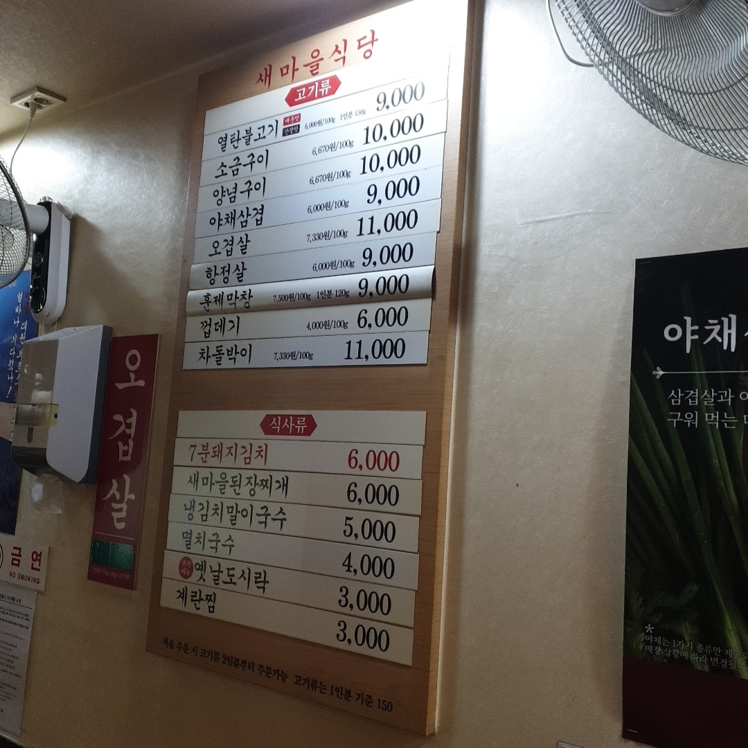 새마을식당 메뉴입니다.