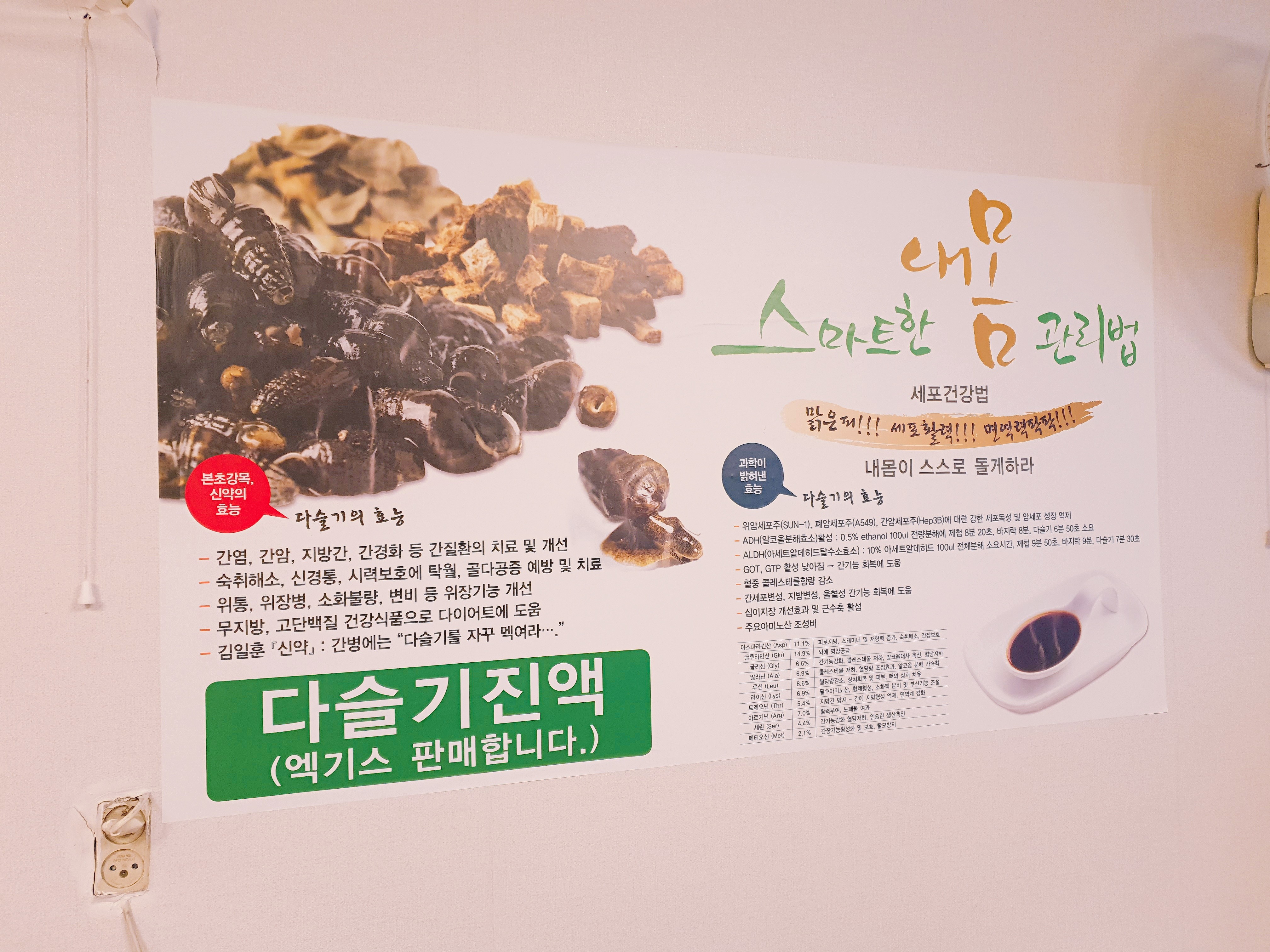 그 몸에 좋은 음식 먹으면 몸에서 땀이 나잖아요? 제가 왠만한 음식 먹어도 땀이 안나는데 이집 다슬기탕 먹으면 땀이 쫙 나는게 아주 밥먹는게 아니라 보약을 먹고 나온듯한 느낌이 듭니다.