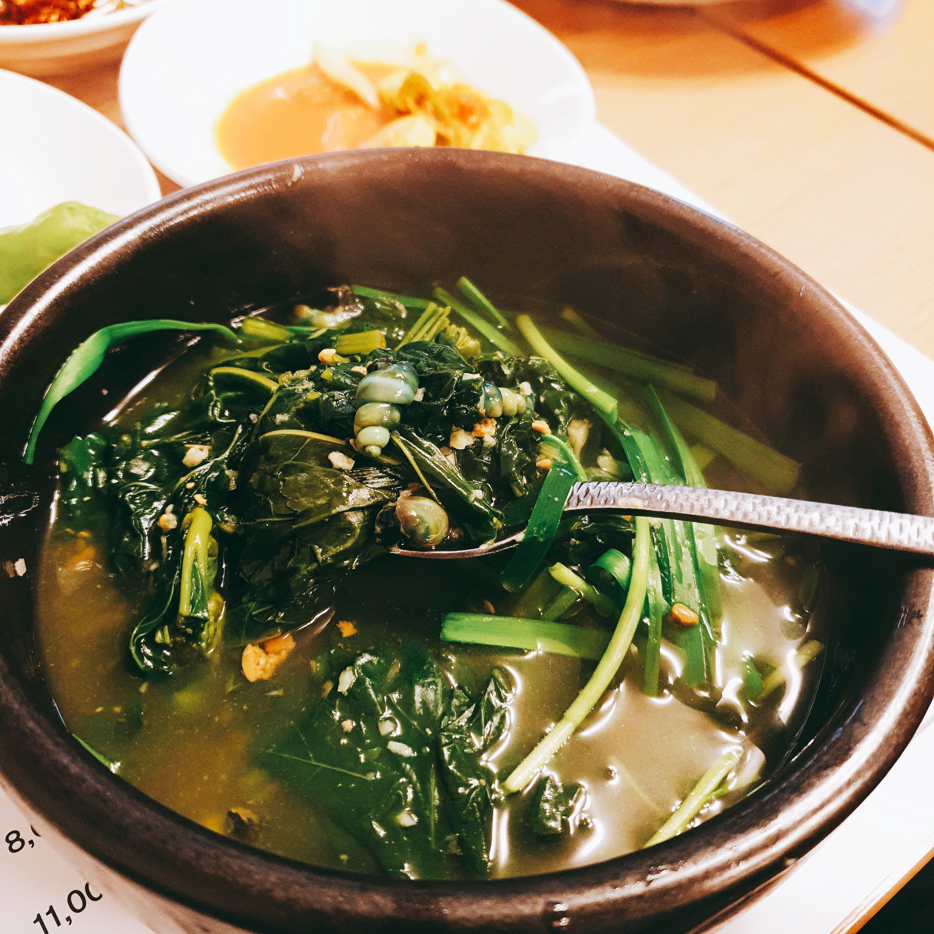 다슬기탕은 이렇게 아욱? 제가 알기론 아욱인데.. 아욱이 잔뜩 들어있는게 특징입니다.