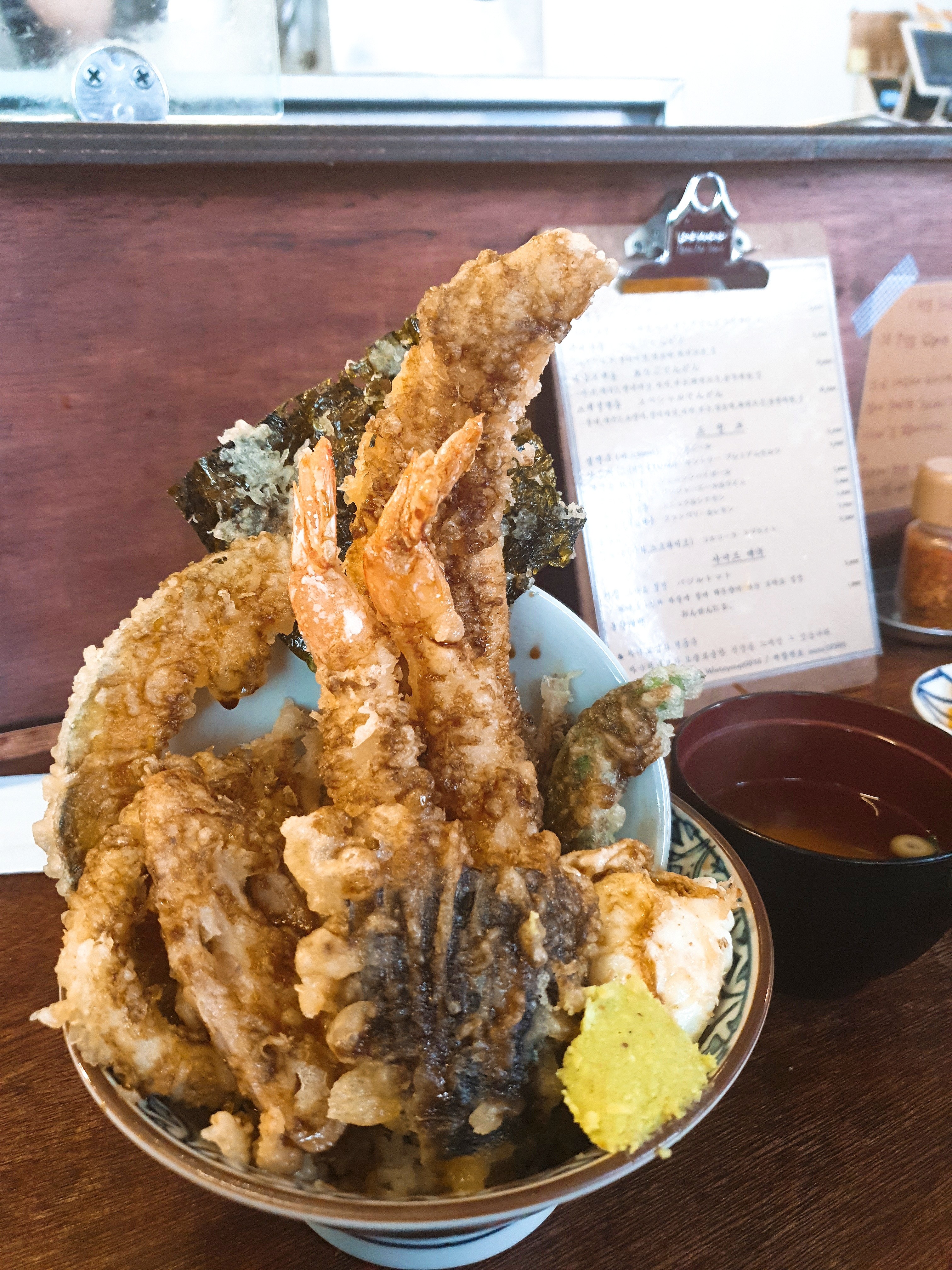 저는 이날 한 40분은 기다렸던 것 같아서 돈에 상관없이 기왕 온거 뽕뽑고 가자는 느낌으로 '스페셜텐동'을 시켜봤습니다.