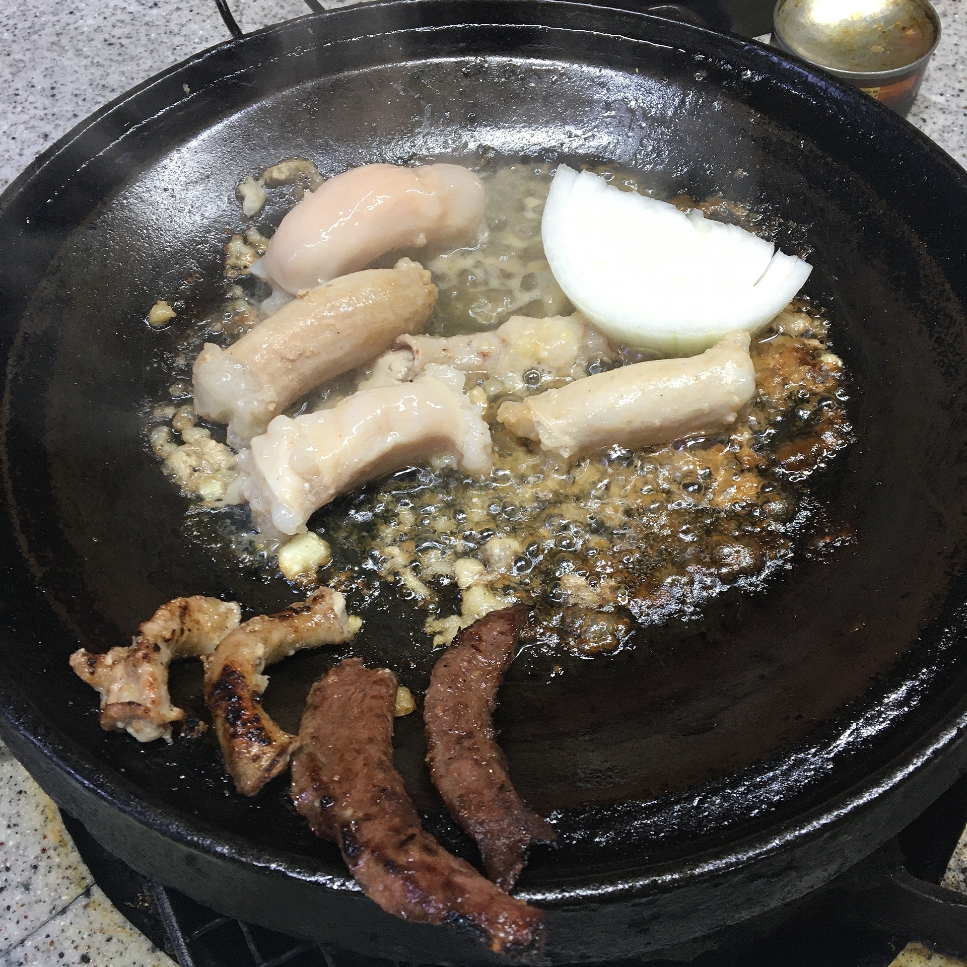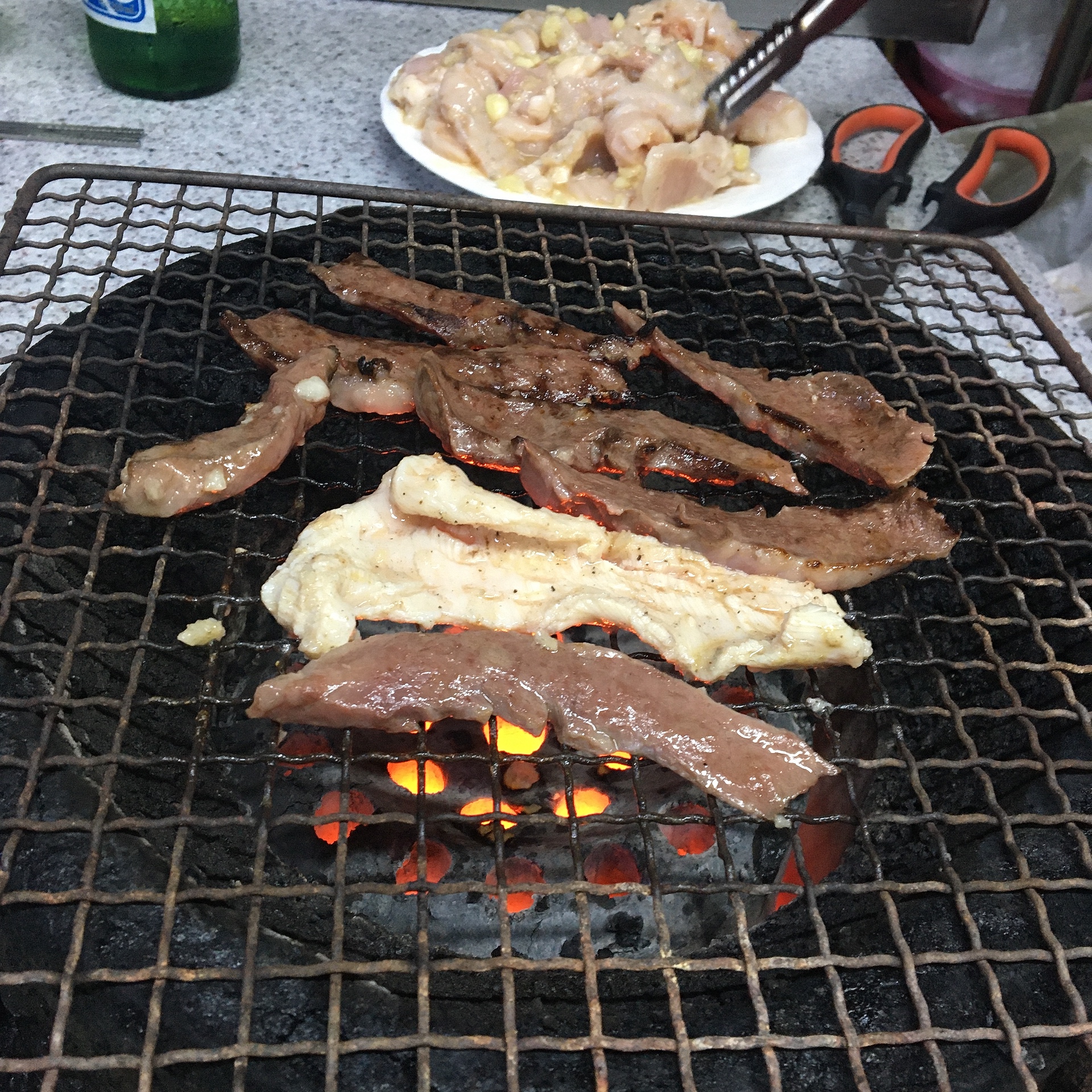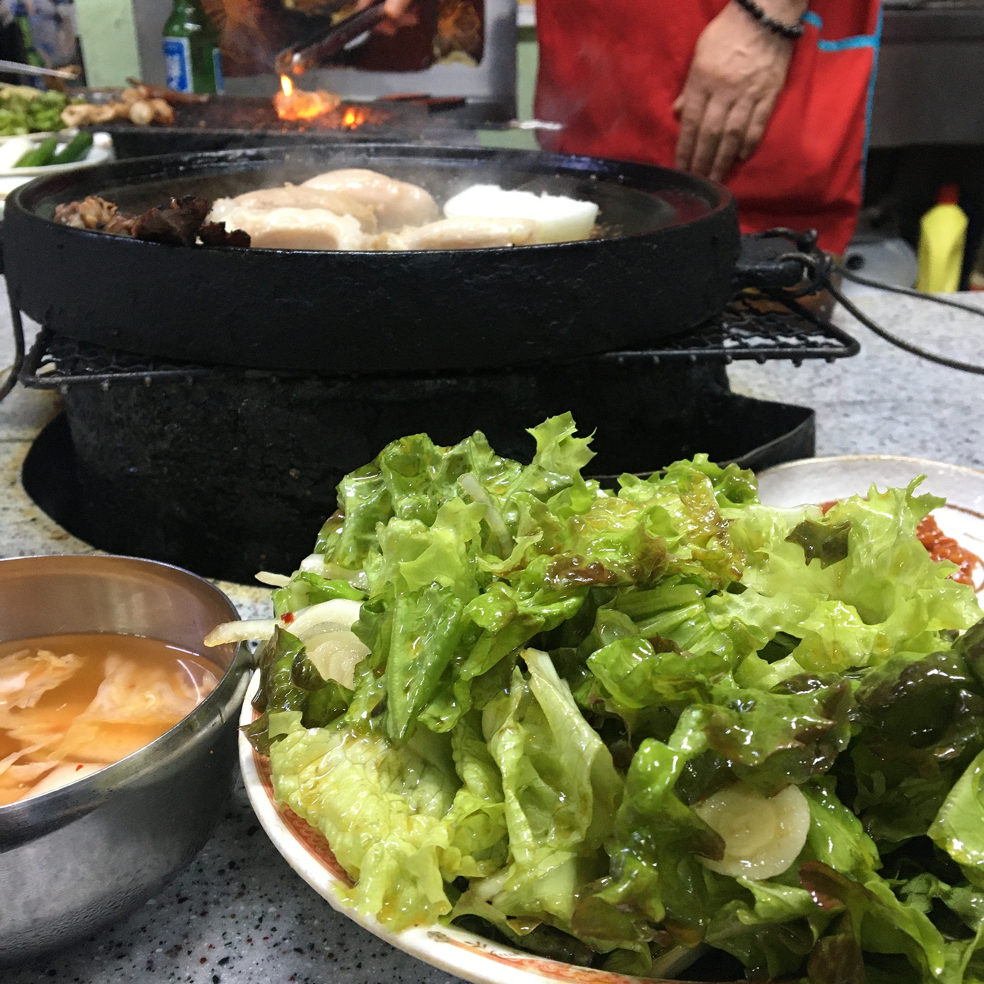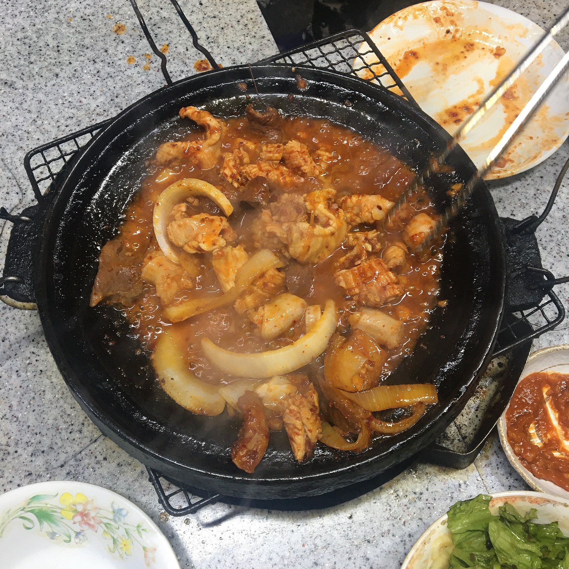 6명이서 가서 불판 두개로 먹었는데, 하나는 무쇠판 위에 한쪽에선 석쇠에 바로 구워주셔서 양쪽에다가 익은거 가져다 주셨습니다.