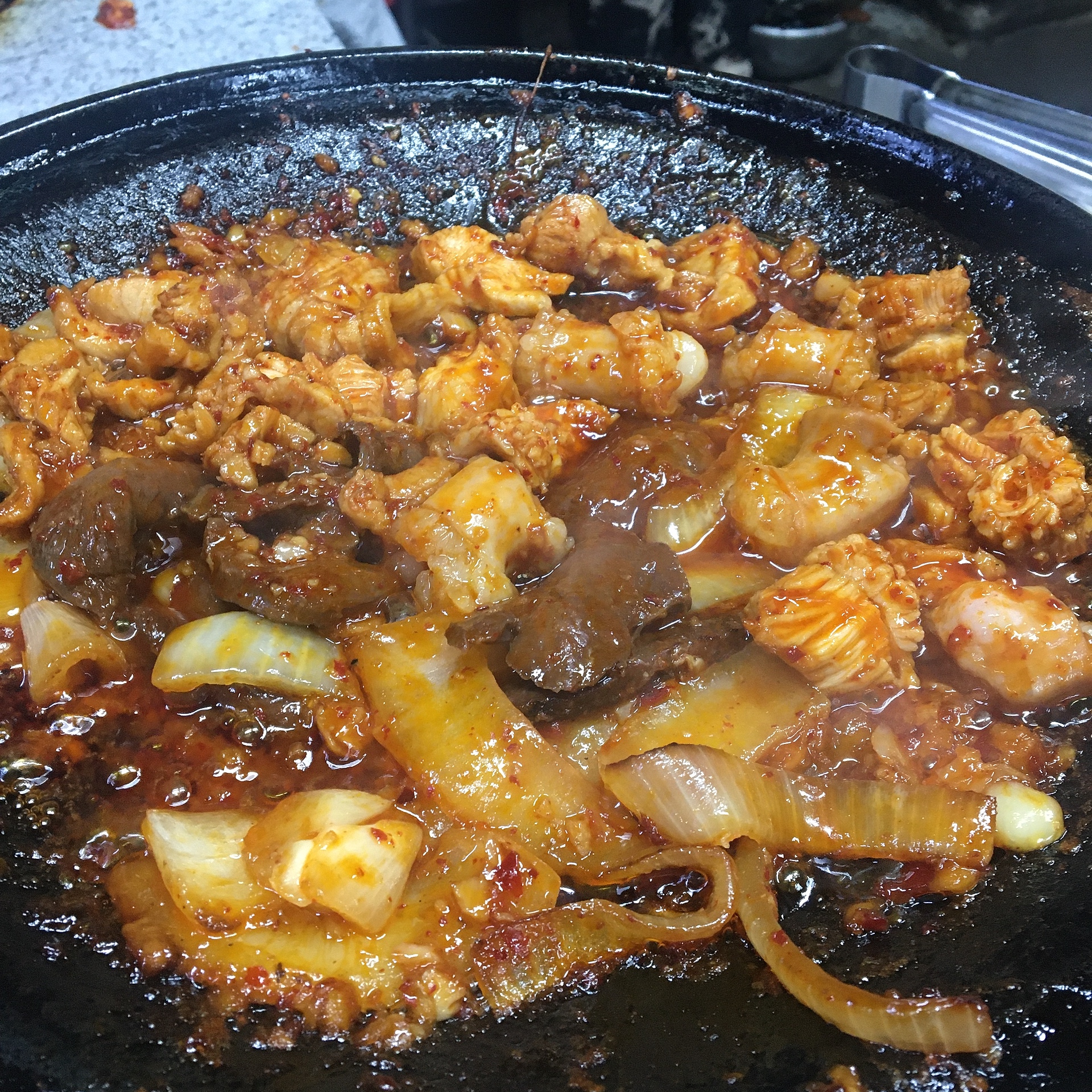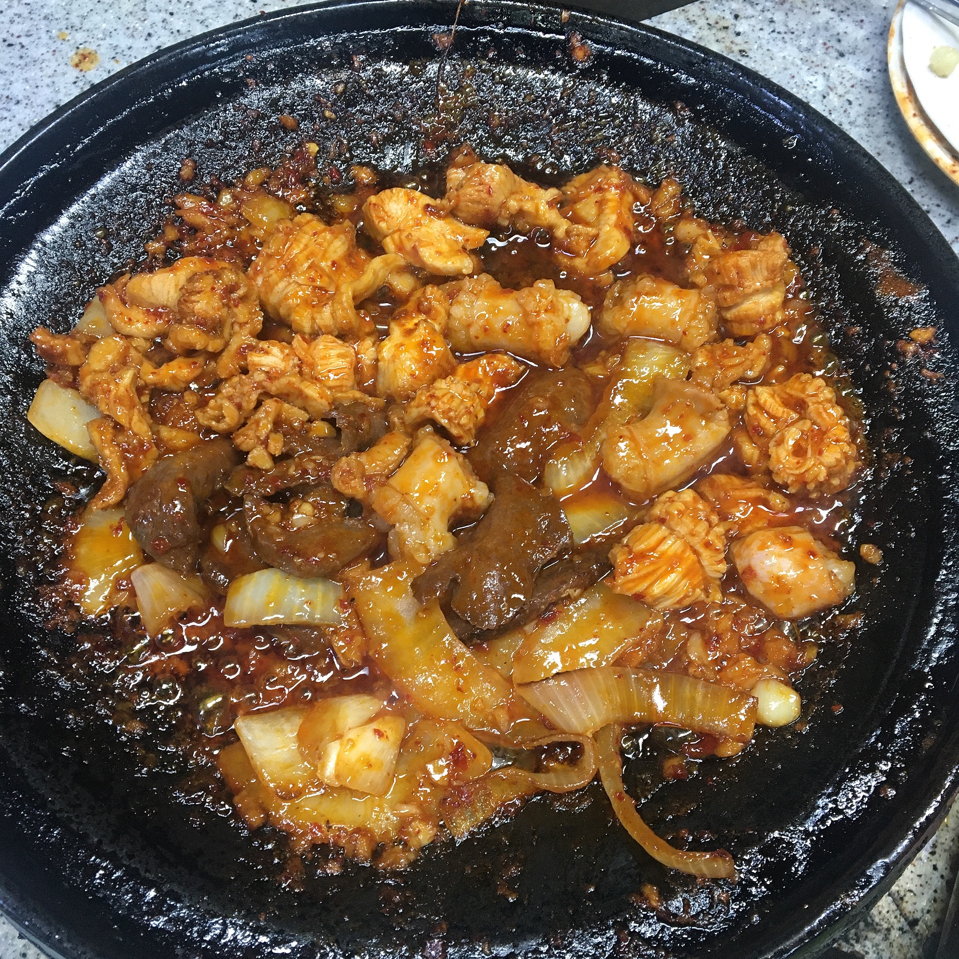 이 양념이 아주 기가막힌게 대창과 곱창에서 흘러나온 기름과 육즙들을 양파가 그대로 흡수하고, 그리고 거기에 빨간 양념이 버무려지고 튀겨져서... 와.. 이 양념맛은 진짜 한번 드셔보신 분들만 아실겁니다. 어떻게 글로 표현이 안되네요...