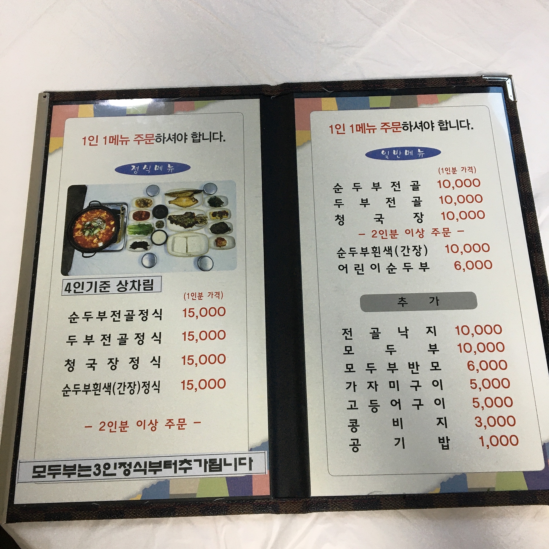 여러 메뉴들이 있지만 거리 이름인 '순두부'가 들어간걸 먹어보기로 했습니다.