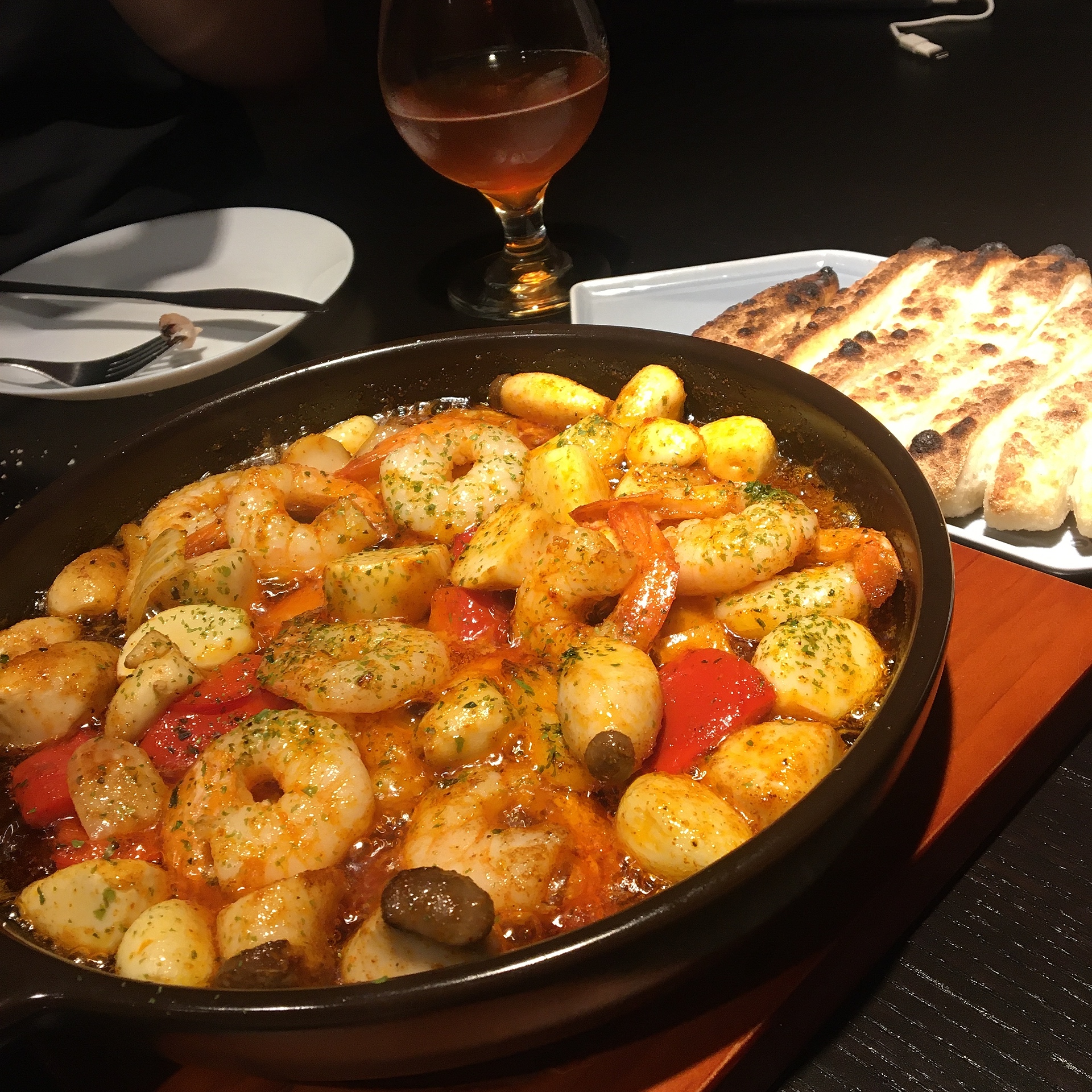안주로는 감바스 알 아히요를 시켰습니다.