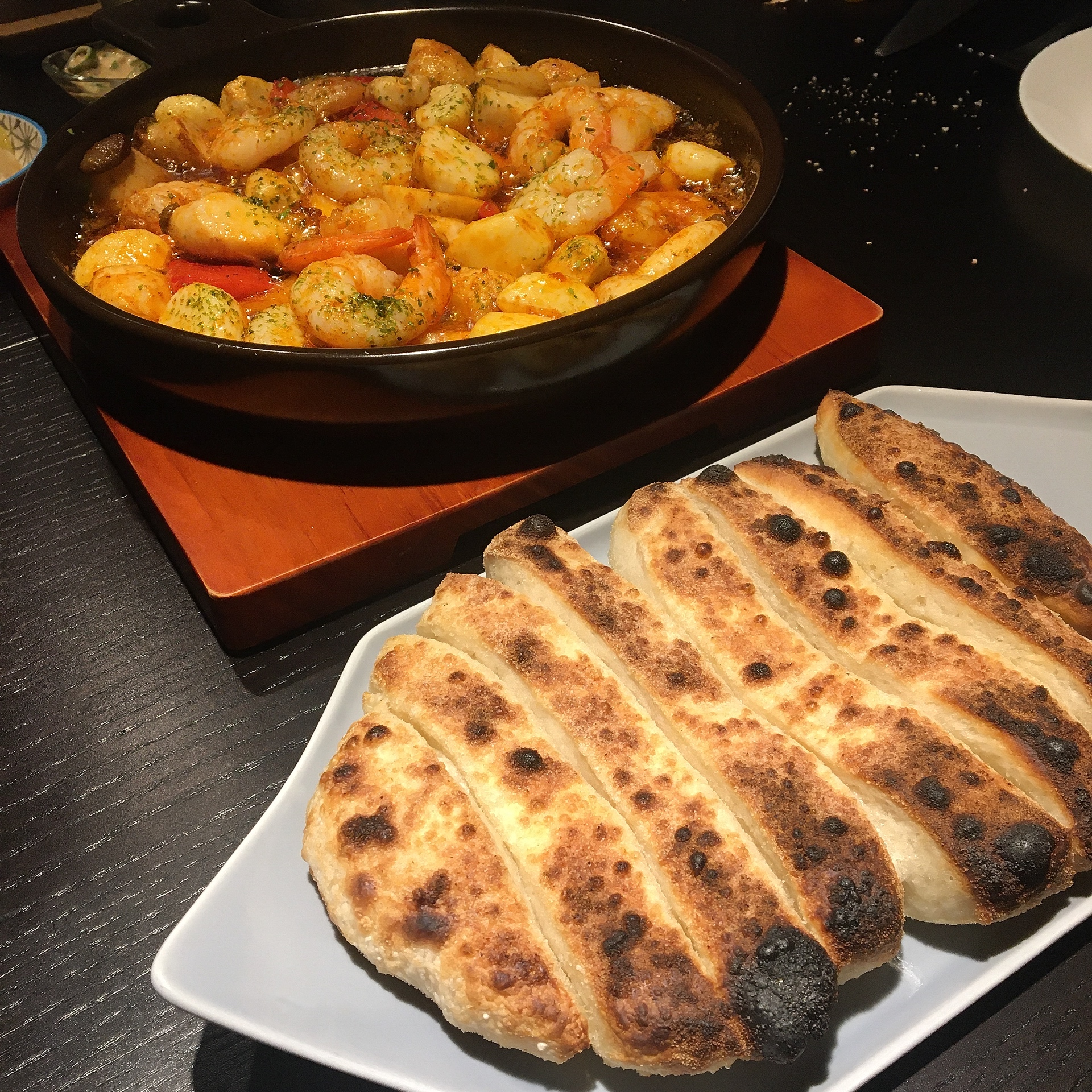 다른집은 보통 마늘바게뜨같은걸 주는데 여기 저 빵은.. 뭔빵인진 모르겠는데 진짜 쫄깃쫄깃하고 살짝 탄맛이 나는게 화덕에 구워주신 것 같은.. 쫄깃함이 이세상 쫄깃함이 아닙니다.