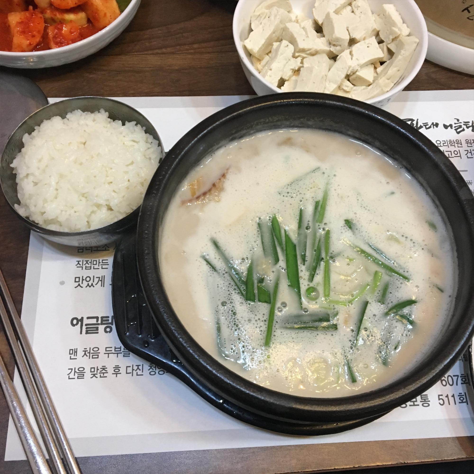 제가 그동안 먹었던 황태탕은 맑은 국물에 계란이 조금 떠있고 무와 파가 들어있는 그런 탕이었는데.. 황태어글탕은 뭔가 다른 차원의 음식이었습니다.