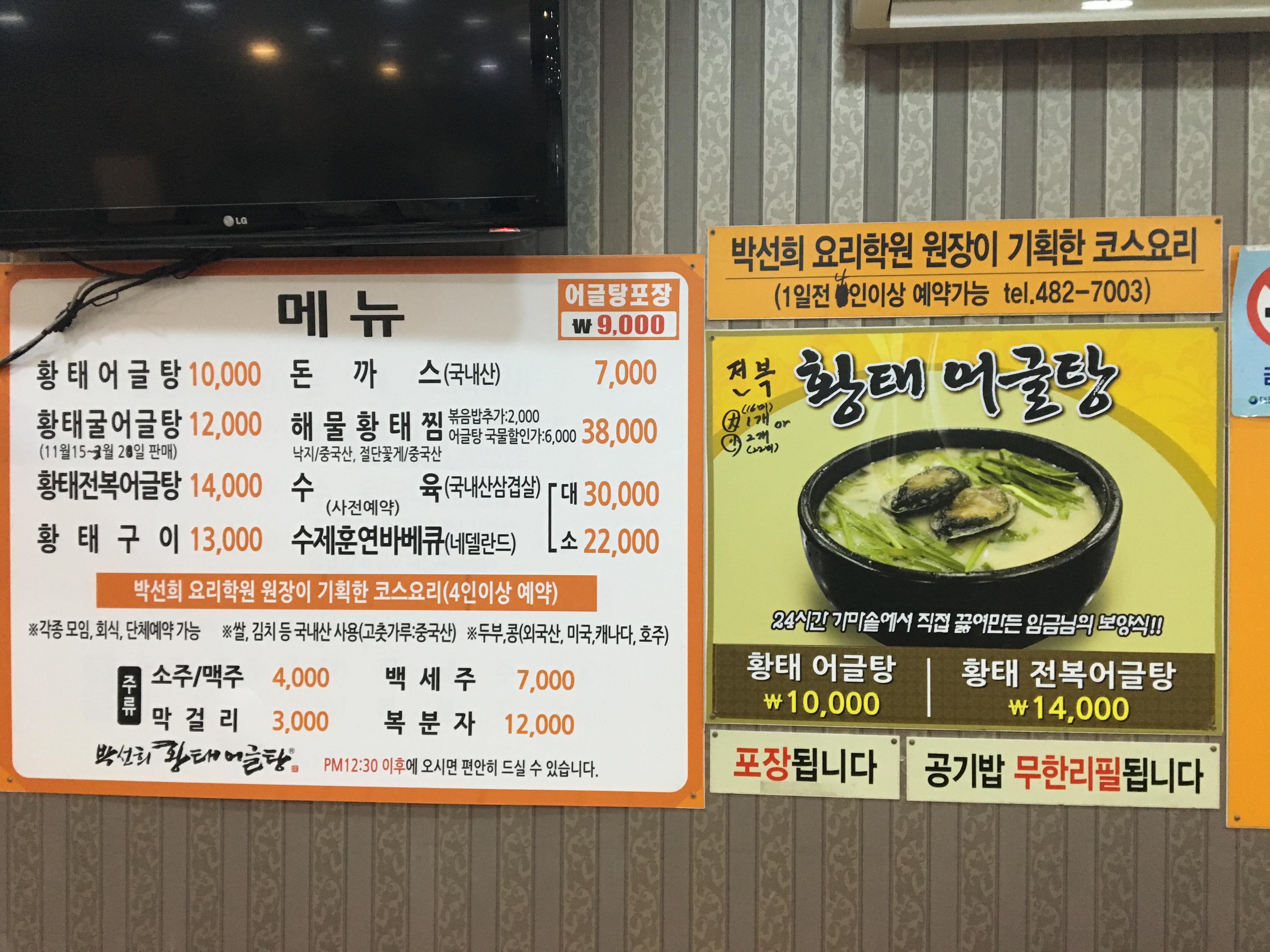 박선희황태어글탕 메뉴입니다.