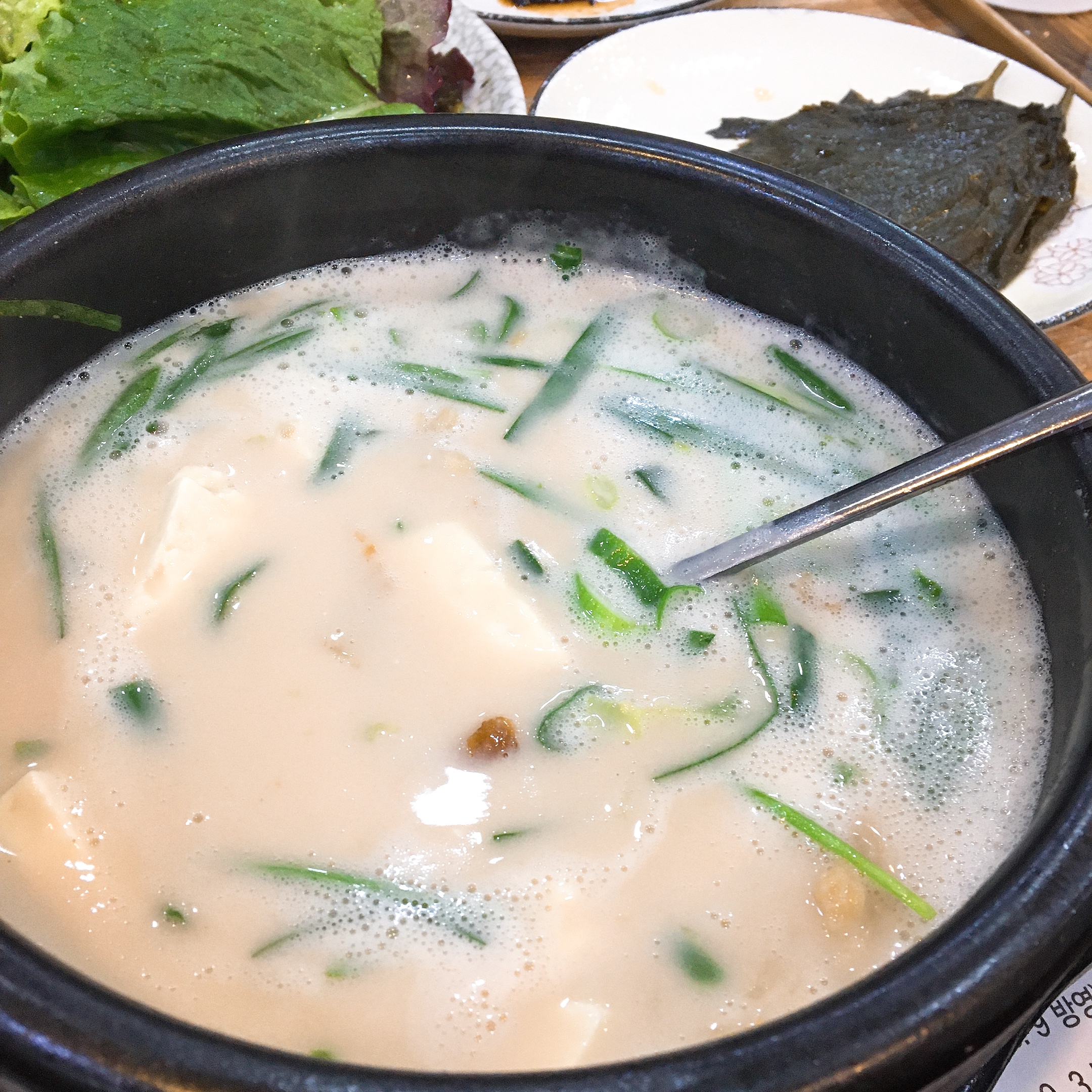 그리고 저 국물엔 밥을 말아먹어야 합니다. 그럼 약간.. 그래 콩국수 같기도 하네요. 그런 걸쭉한 국물에 밥말아 먹는 느낌도 나면서 무튼 맛있습니다.