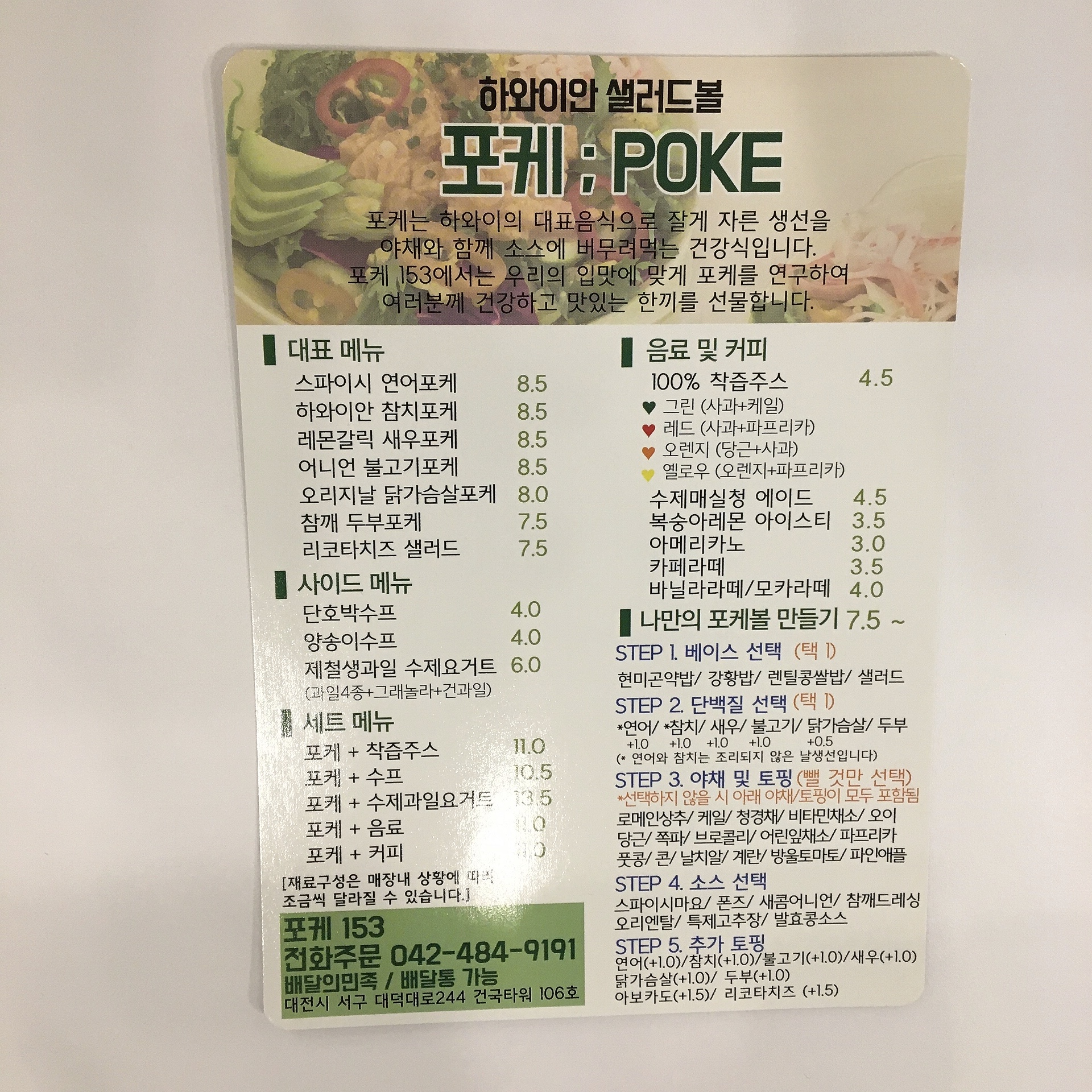 포케153 메뉴입니다.