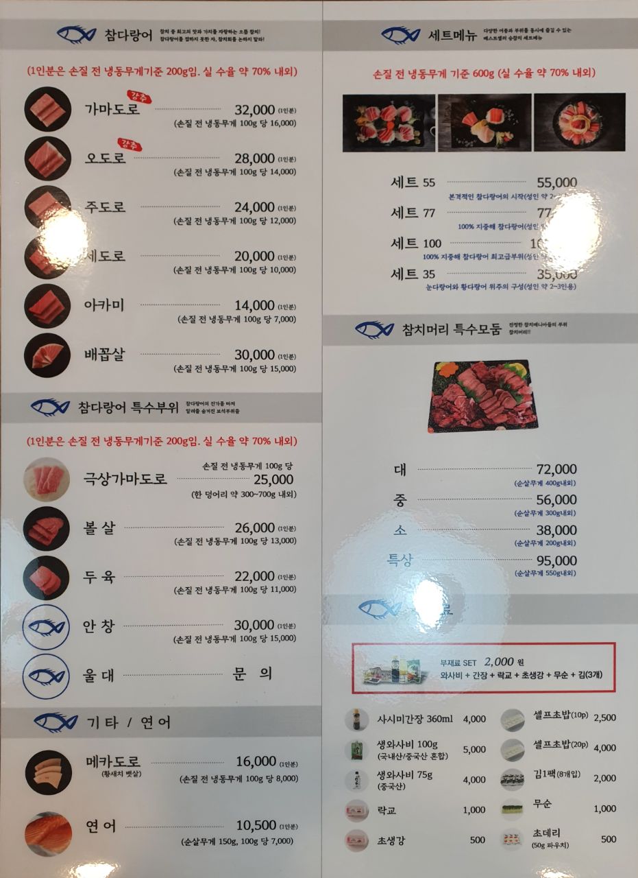 진짜 제대로 된 참치를 얼마만에 먹는건지.ㅠ 특히 저 하얀부분 많은게 배꼽살인가요? 저 부위를 너무 먹어보고싶었는데 아주 만족스런 구성이었습니다.