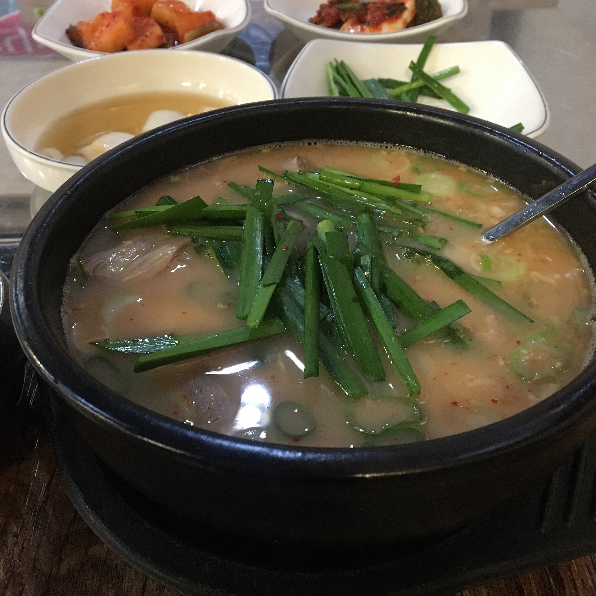 엄청난 양의 부드러운 돼지수육과 구수한 국물을 같이 먹다 보니 앞에 있는 부추를 넣어보고 싶었습니다.