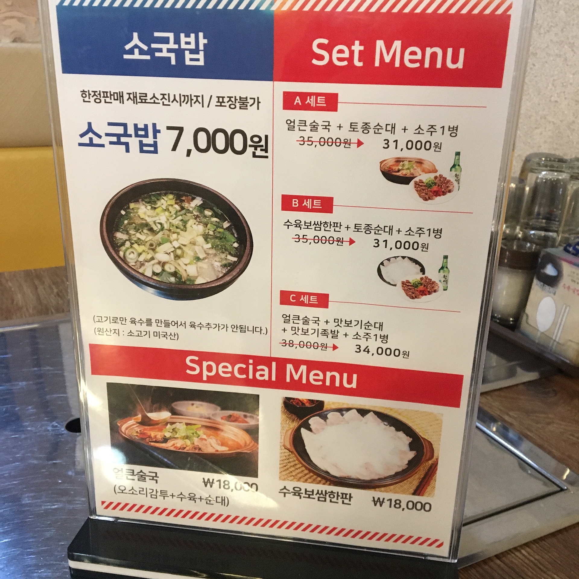 그리고 소국밥과 세트메뉴, 그리고 얼큰술국까지 준비되어 있습니다.