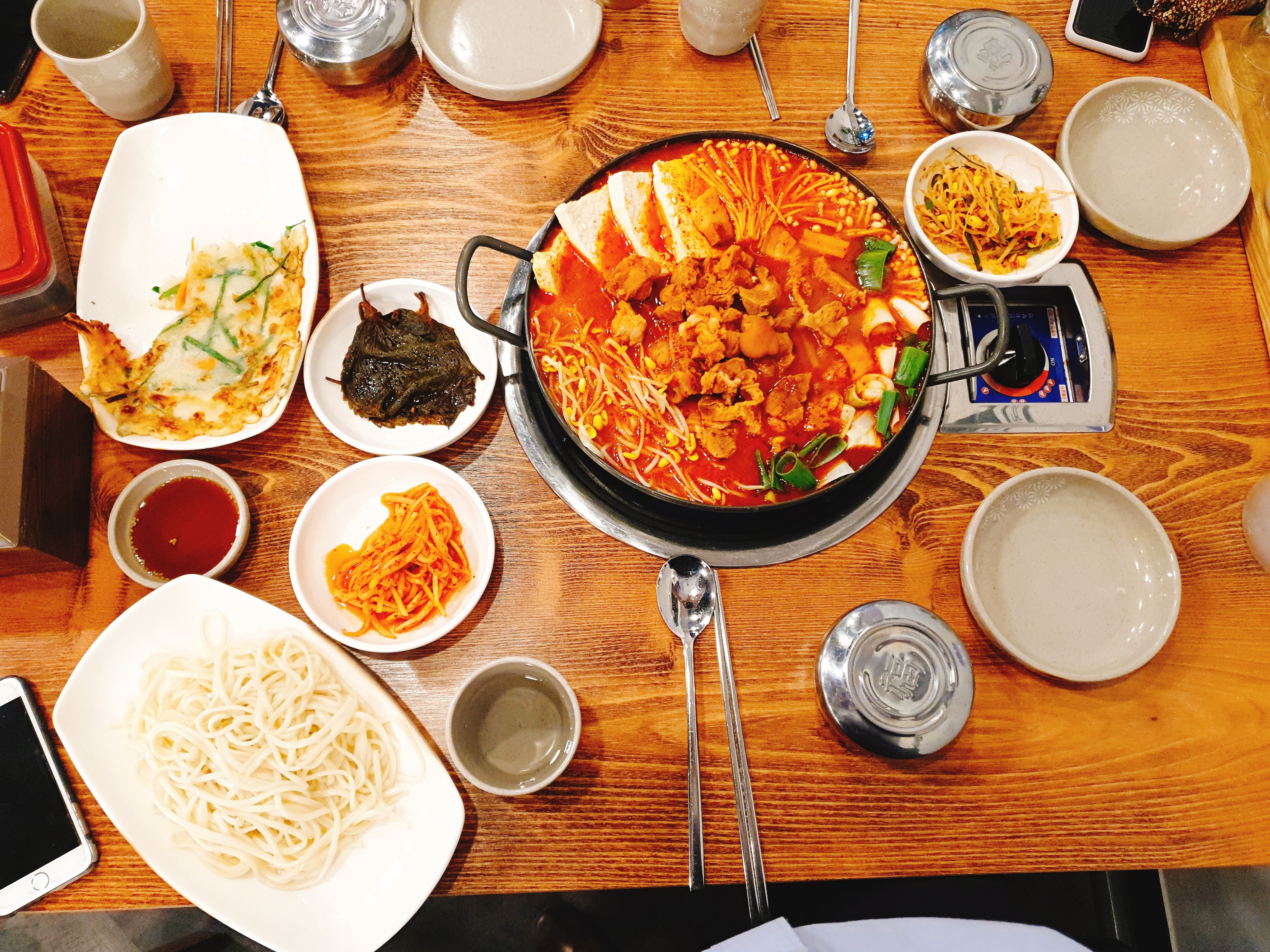쫄데기 두부전골 3인분에 칼국수사리까지 시킨 모습입니다.