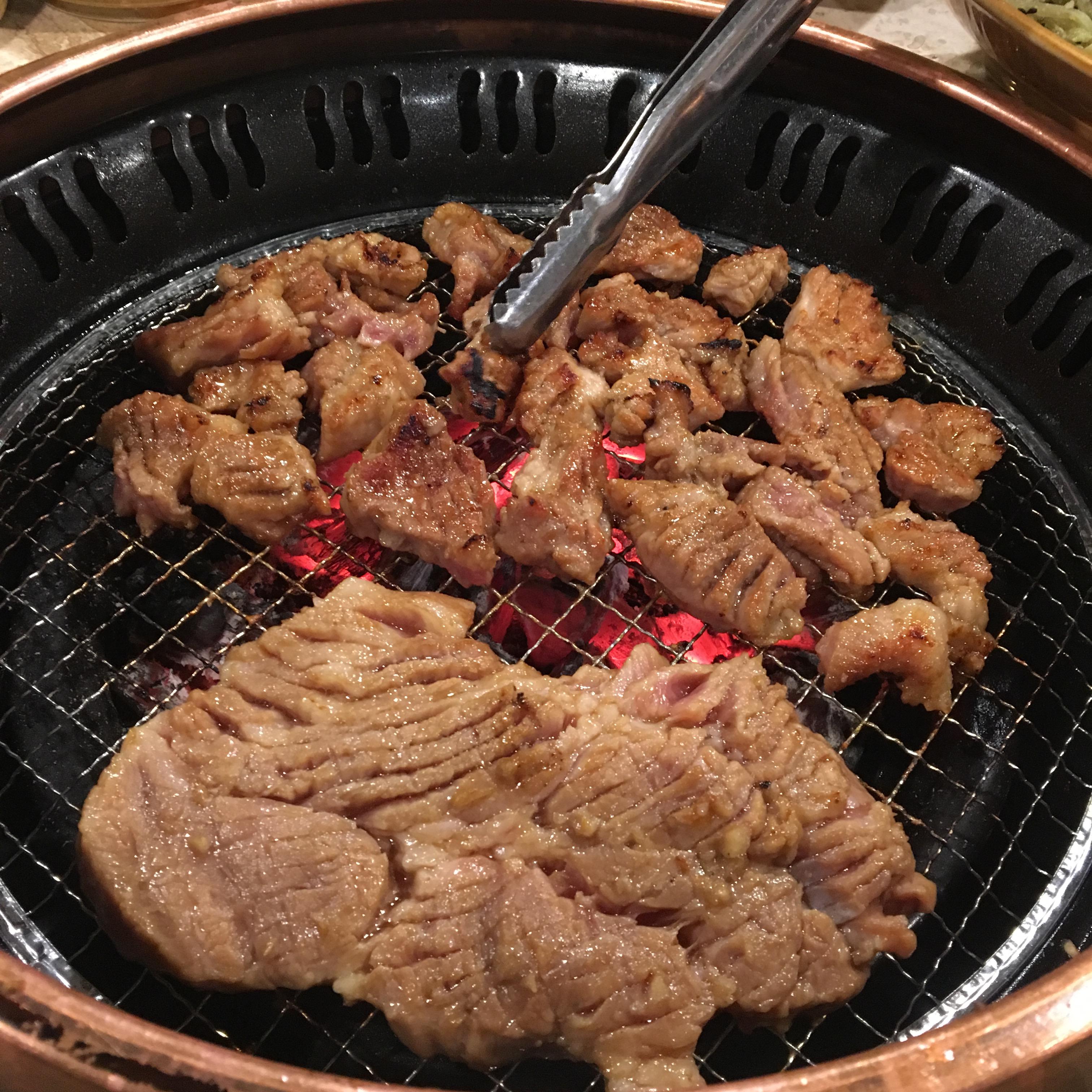 사리원에 왔으니 '냉면'을 안시켜볼 수 없죠. 후식으로 냉면 시키고 같이 먹을 고기를 굽고 있습니다.ㅎㅎ