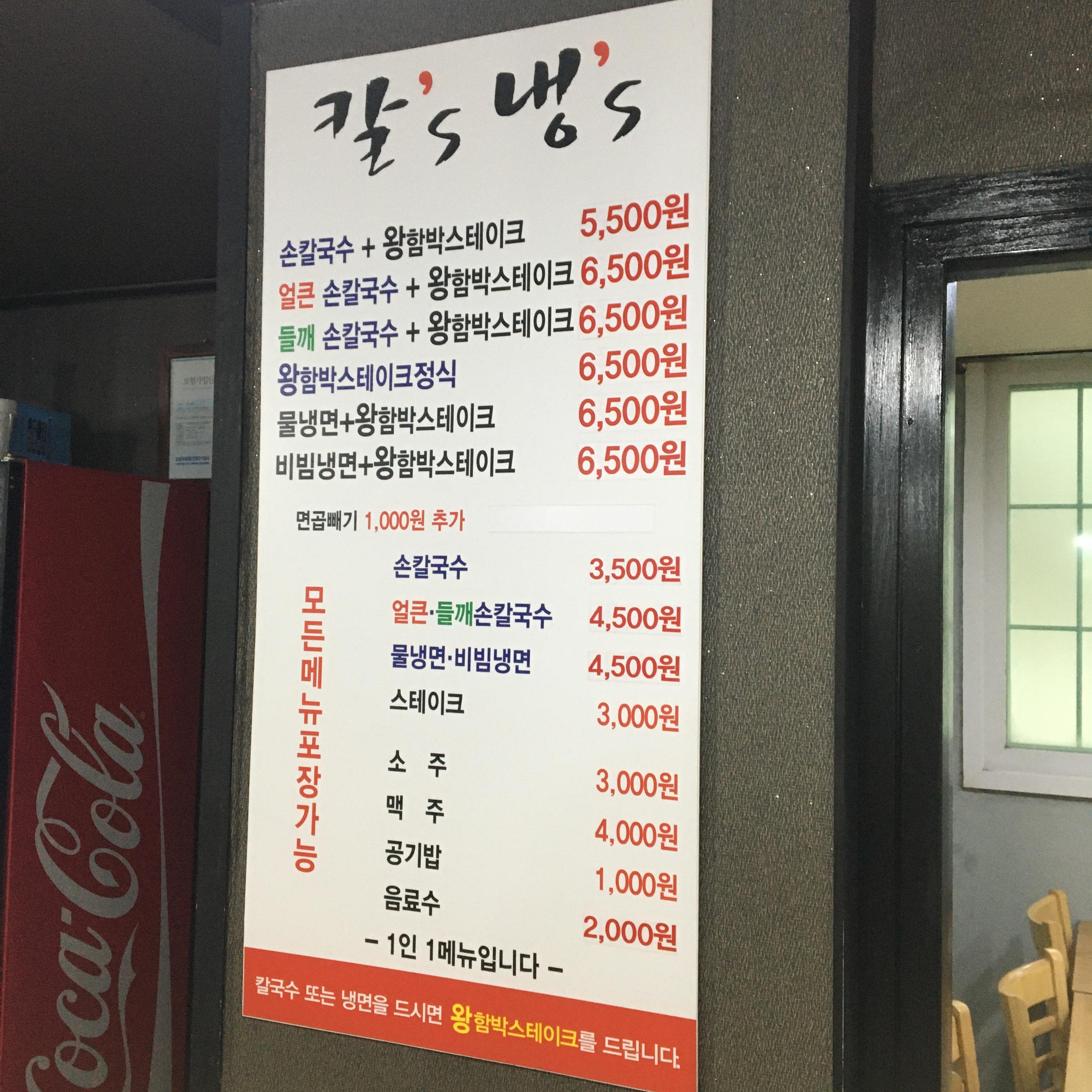 우선 칼스냉스는 저렴합니다. 보통 칼국수가 3,500원이라는 말도 안되는 가격이었습니다.
