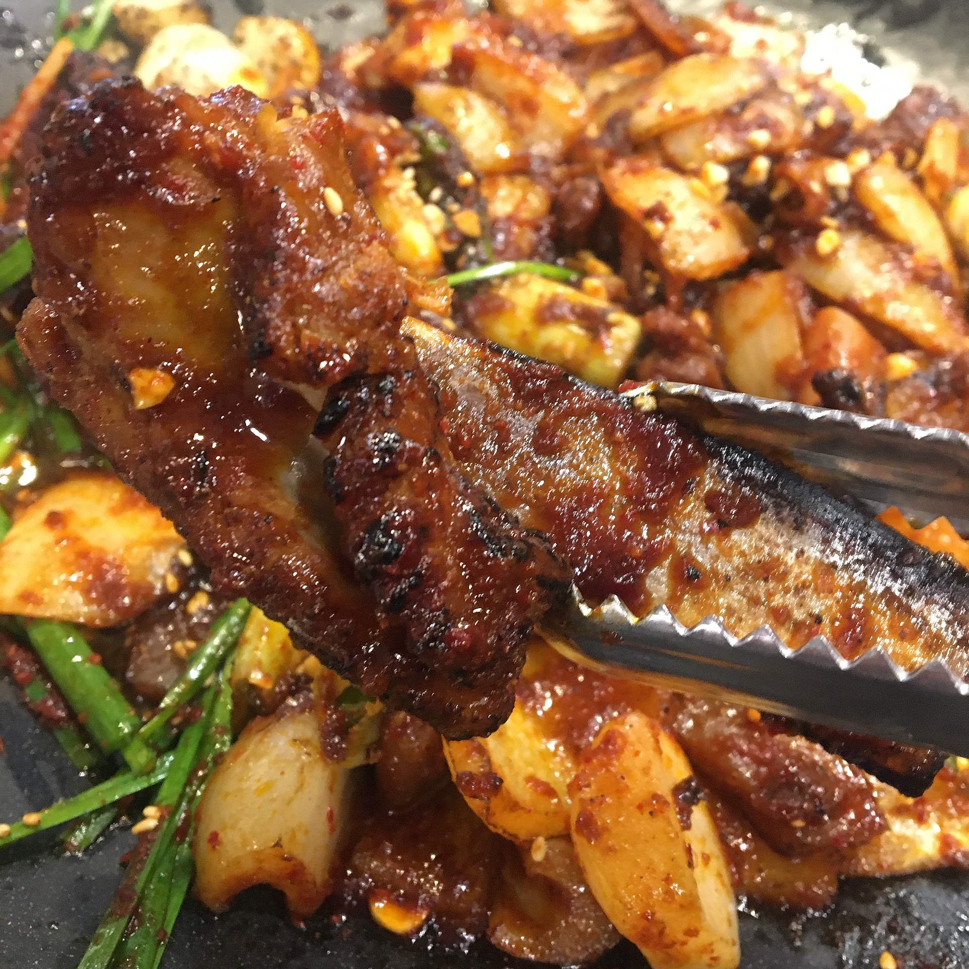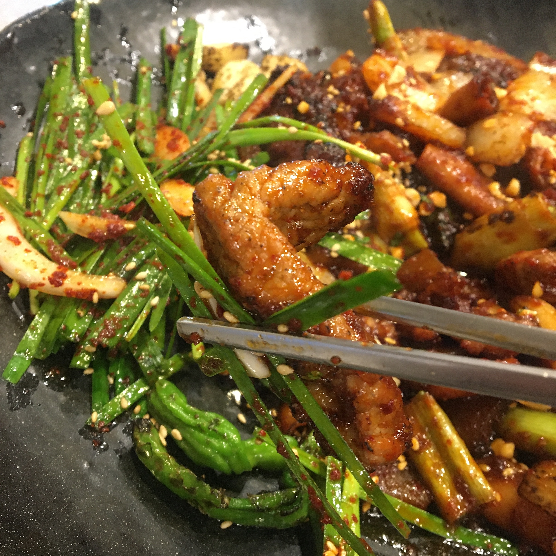 양현담 곱창구이는 일단 양념이 맛있습니다. 이 감칠맛은 진짜 드셔보셔야 알겁니다. 무쇠판에 익고 적당히 늘러붙을수록 더 감칠맛이 살아나는게 아주 좋았습니다.