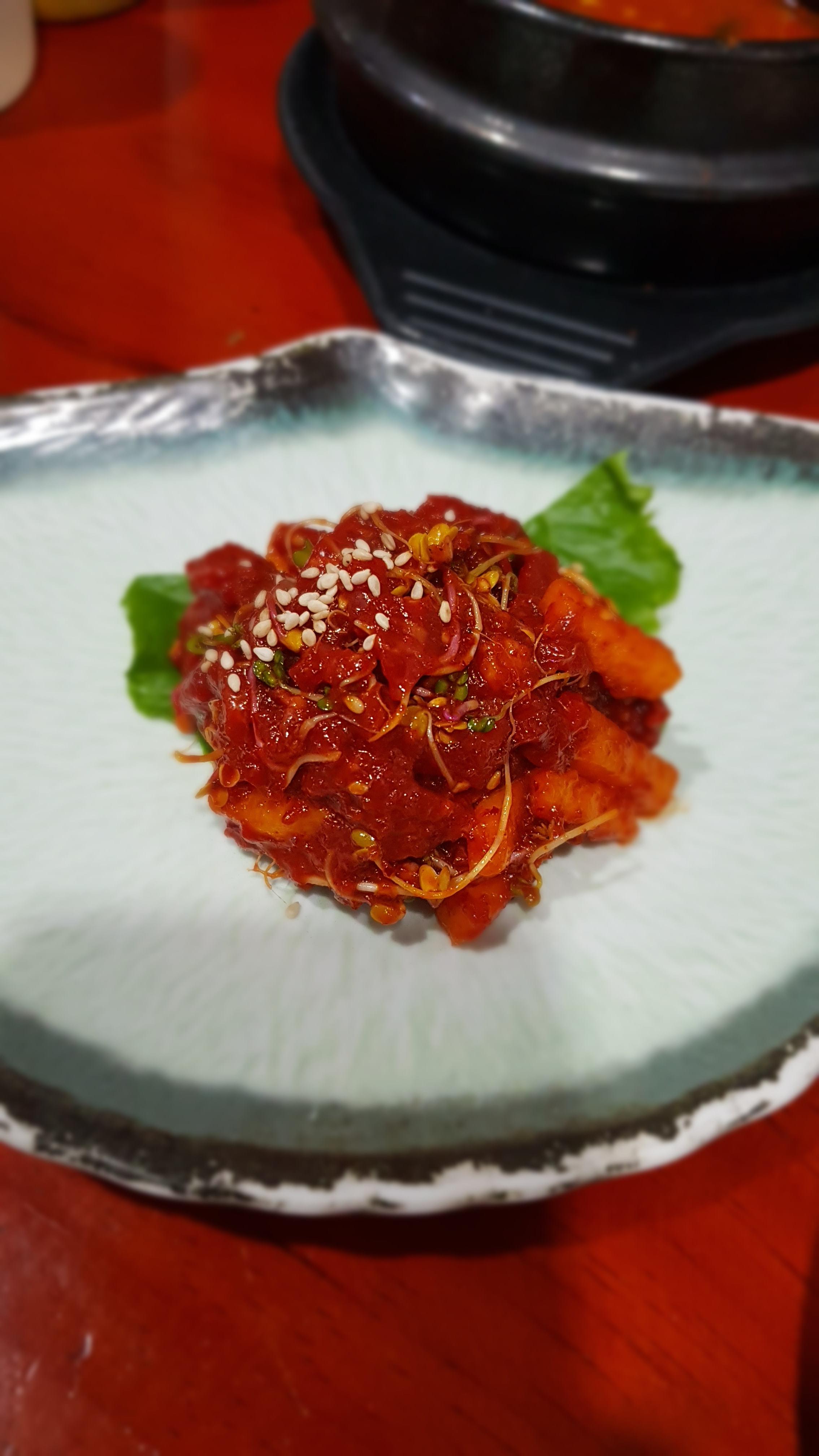 양이 많지는 않은데 달콤하고 고소한게 맛있었습니다. 양념맛과 고기맛이 조화를 잘 이루는 맛있는 육회였습니다.
