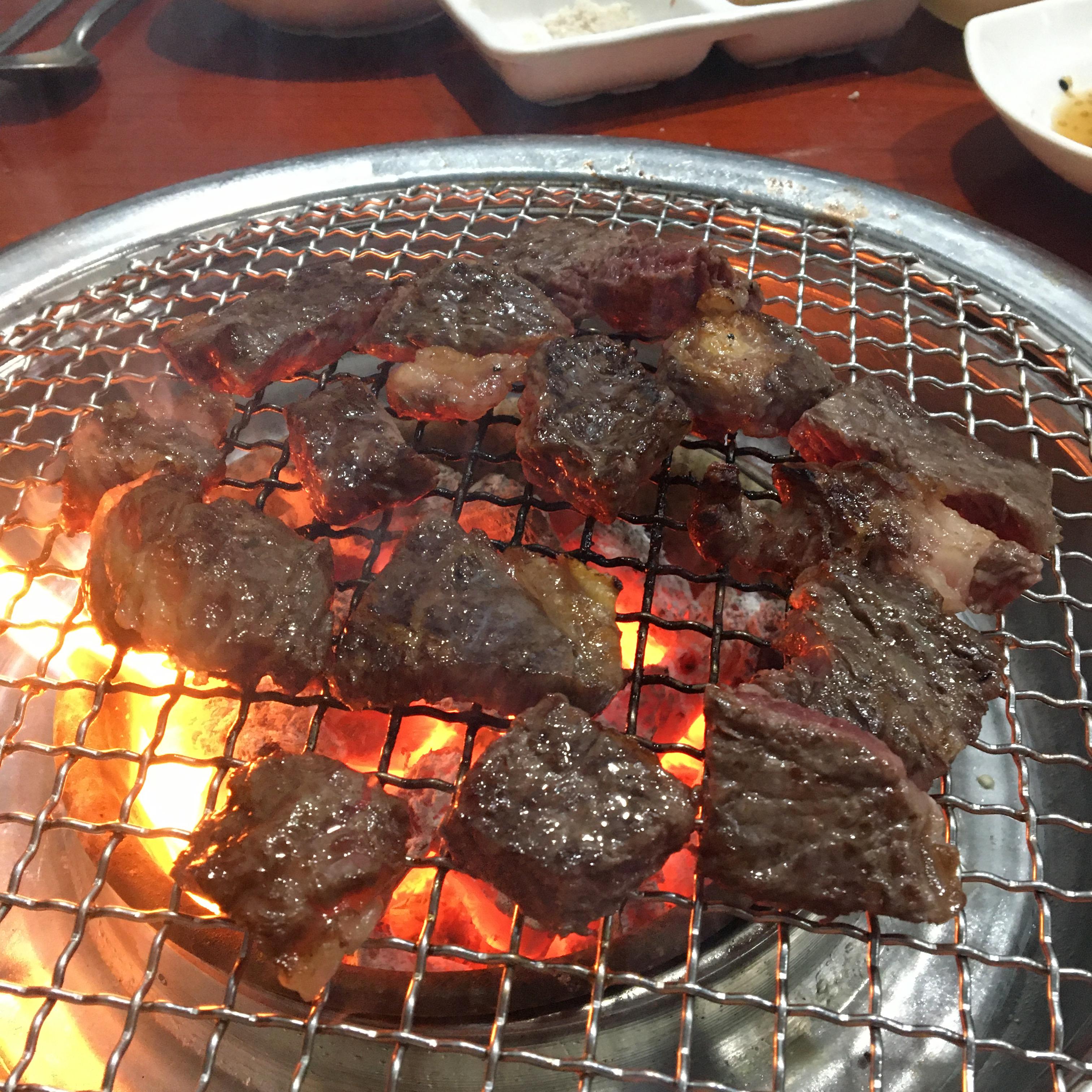 숯불 위에 올라간 고기.. 너무너무 이쁘네요 ㅋㅋ