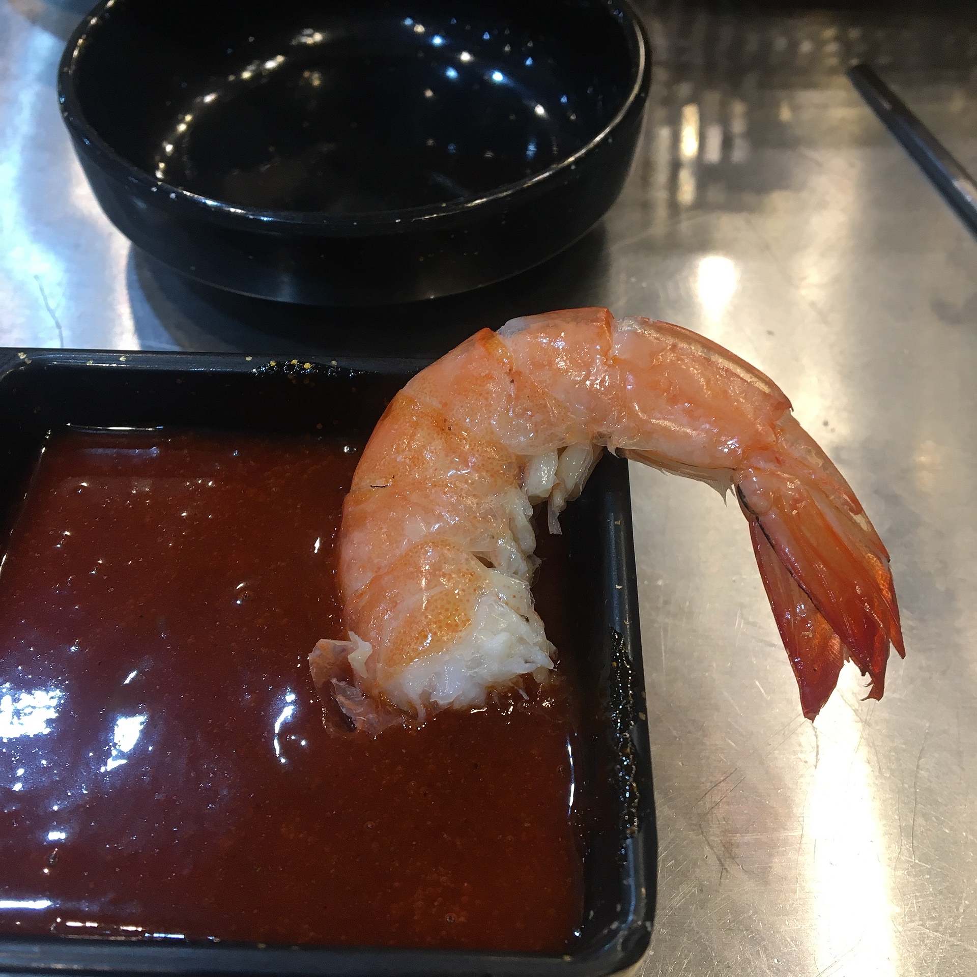이래 싱싱한 새우를 와사비 푼 초장에 푹 찍어 먹으면..