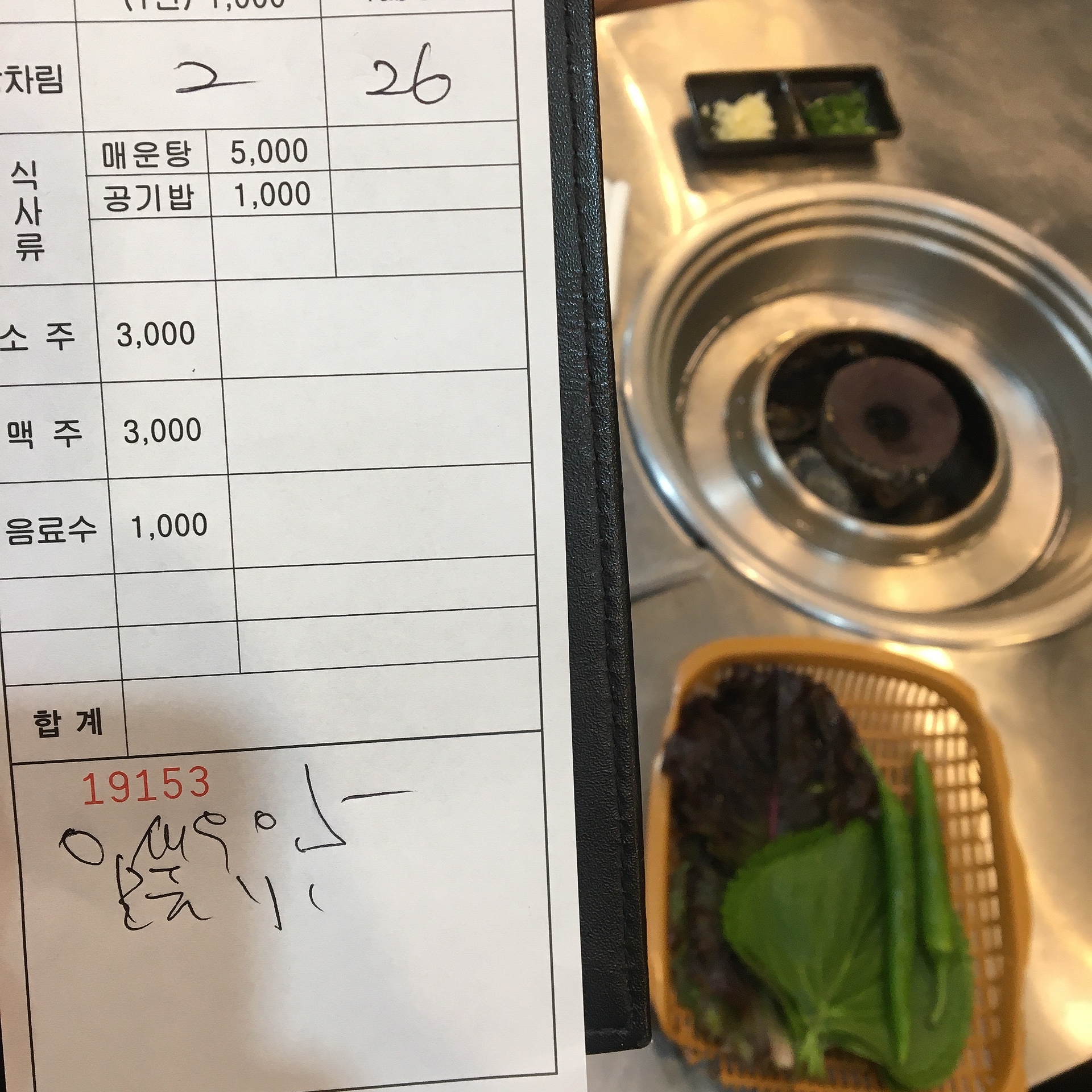 위에서 멈추려고 했는데 취하기도 했고, 매운탕이 5,000원밖에 안하는데 안먹으면 예의가 아닌 것 같아 매운탕도 시켰습니다.