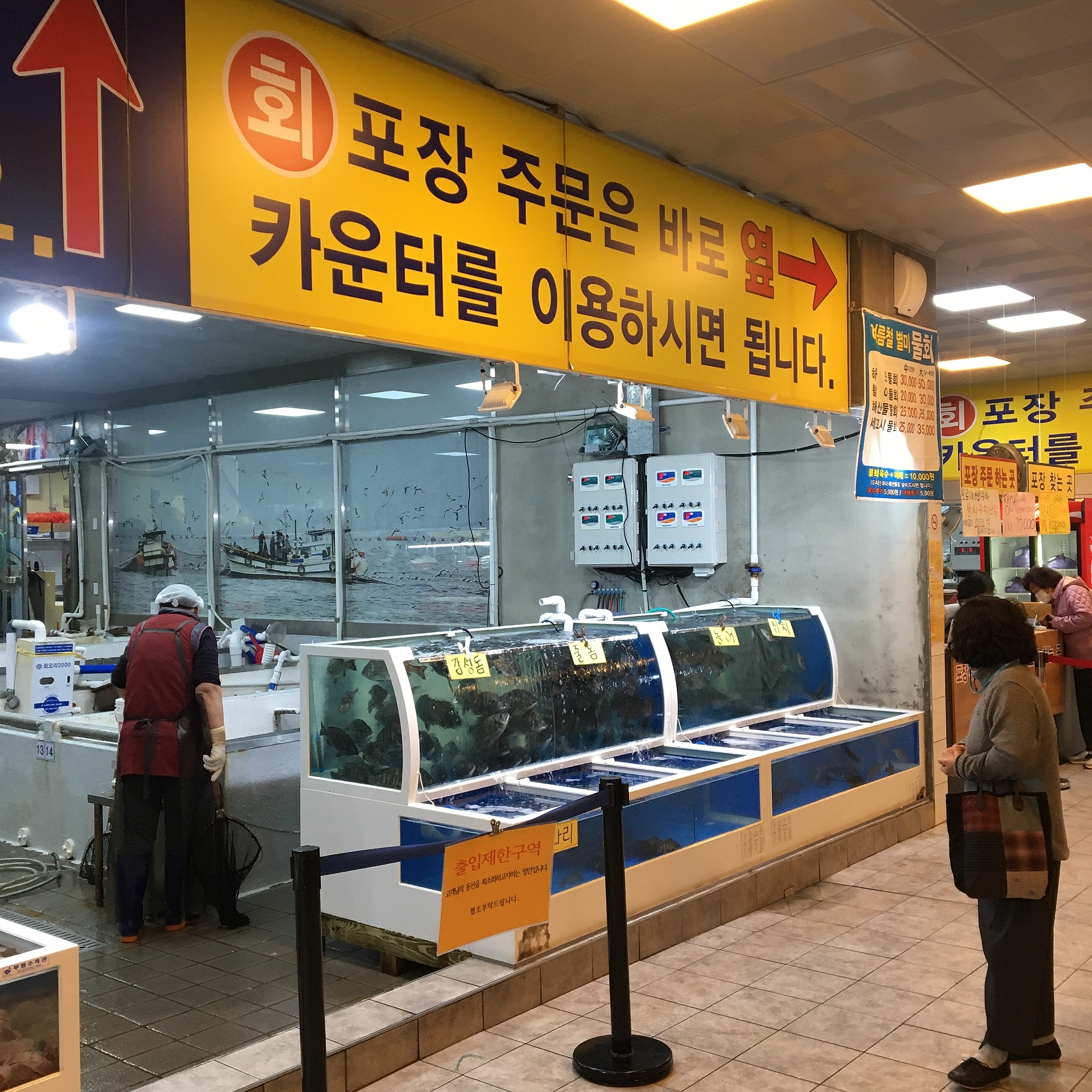 엄청난 크기의 단독건물이었고, 1층엔 위 사진에서 보시듯 수조관 안에 각종 싱싱한 해산물들이 그득그득 담겨있었습니다.