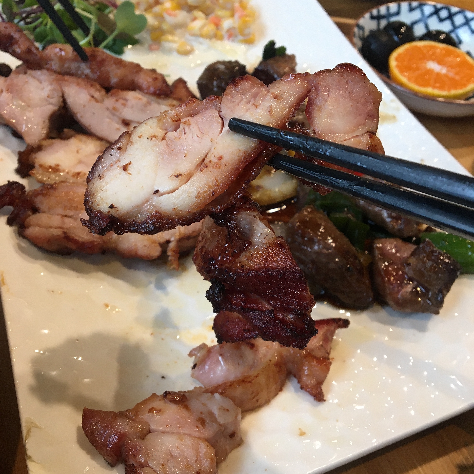 일단 닭다리 스테이크는 맛은 좋았습니다. 색이 진한 부분이 '탔다'라고 생각하실 수도 있는데 타진 않았고, 조금 많이 익은감은 있었습니다. 그런데 바삭바삭한 맛을 더해줘서 오히려 좋았습니다.