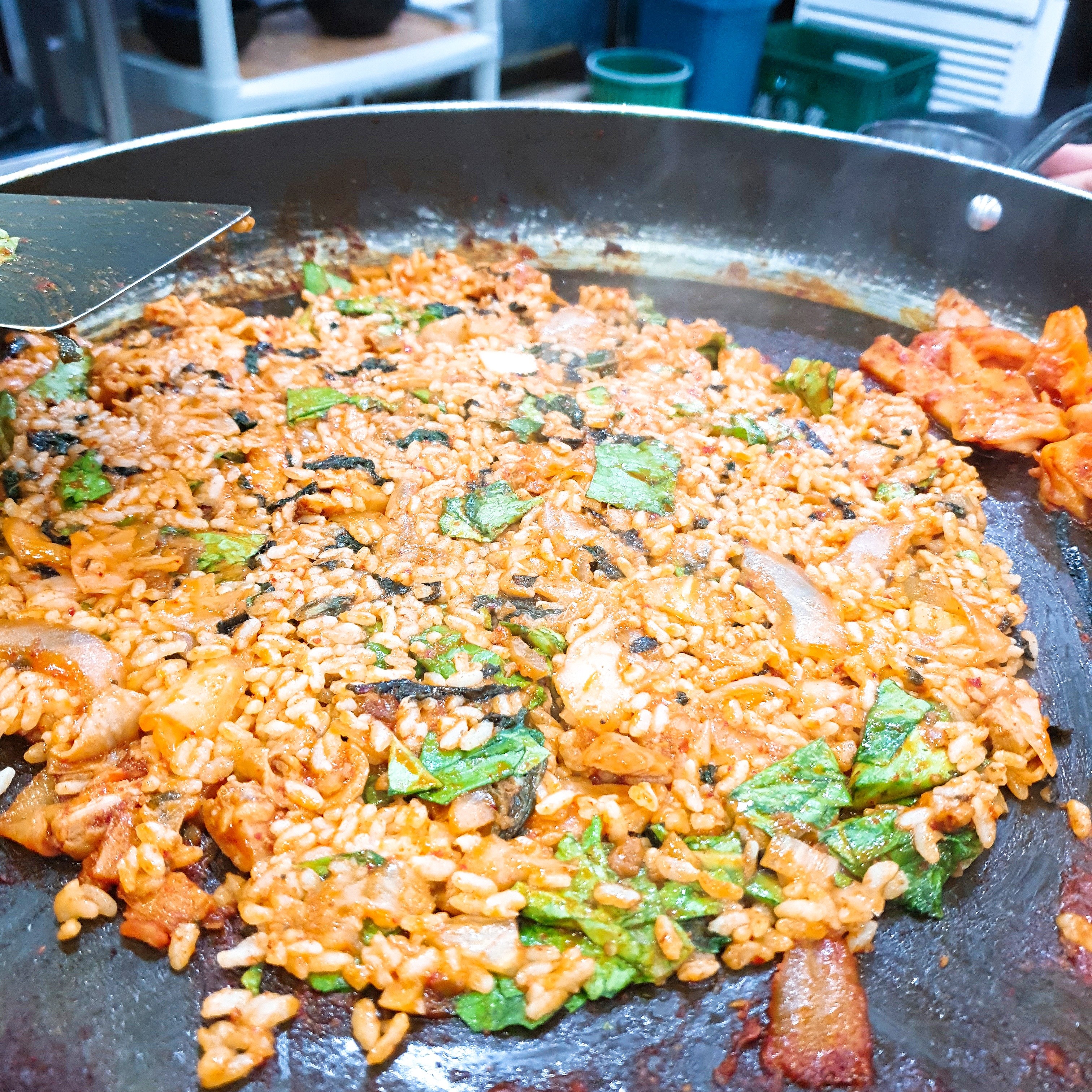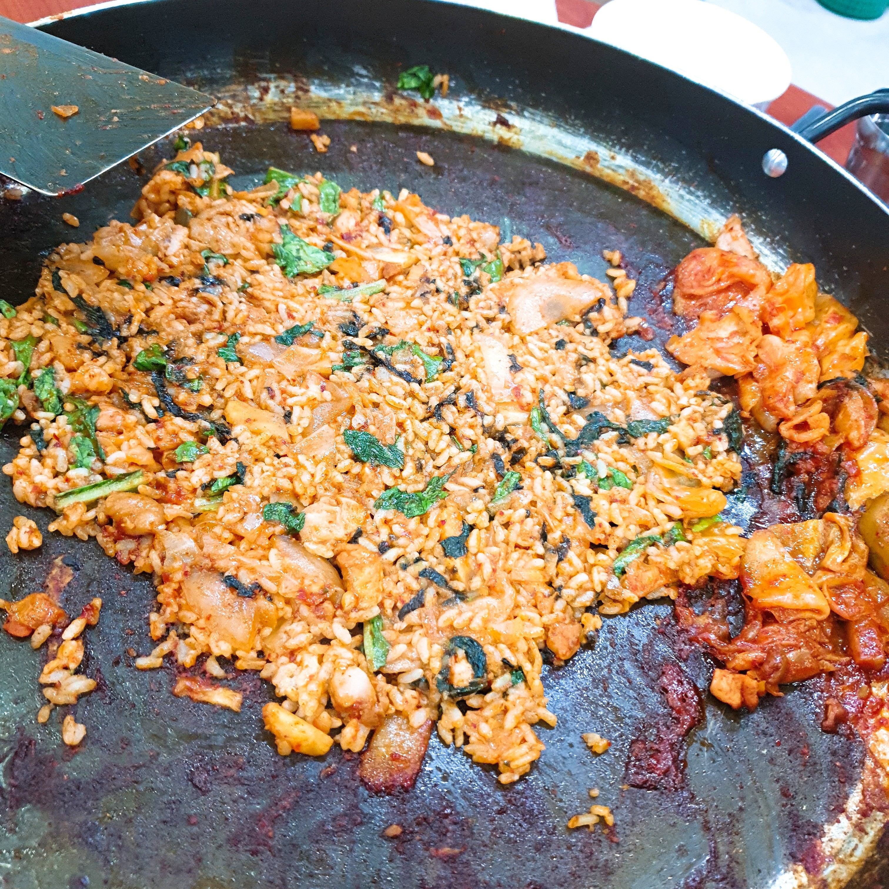 안그래도 맛있는 양념이 철판에 늘어붙고, 볶음밥의 참기름까지 만나서 그냥 이건 숟가락이 멈출 수 없습니다.