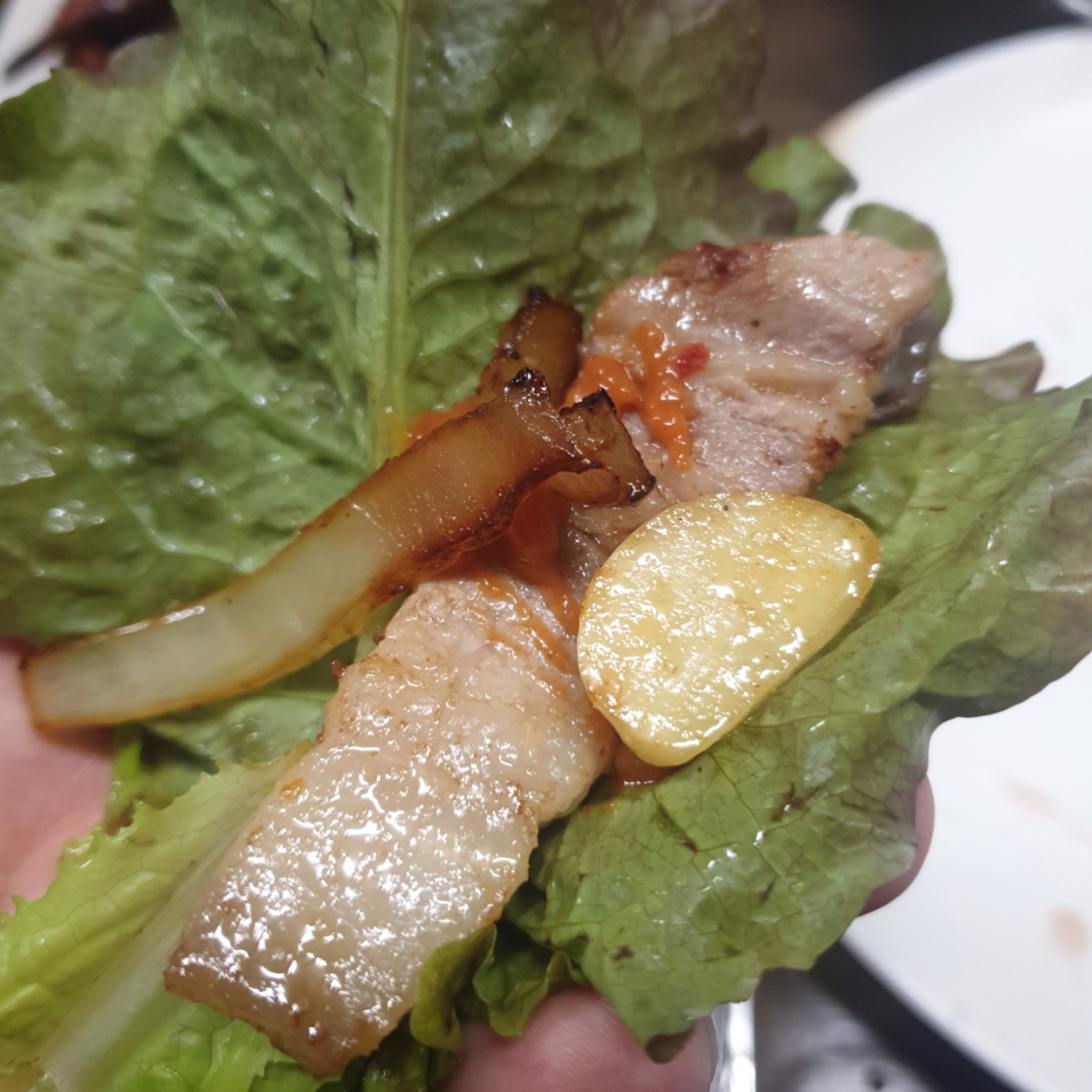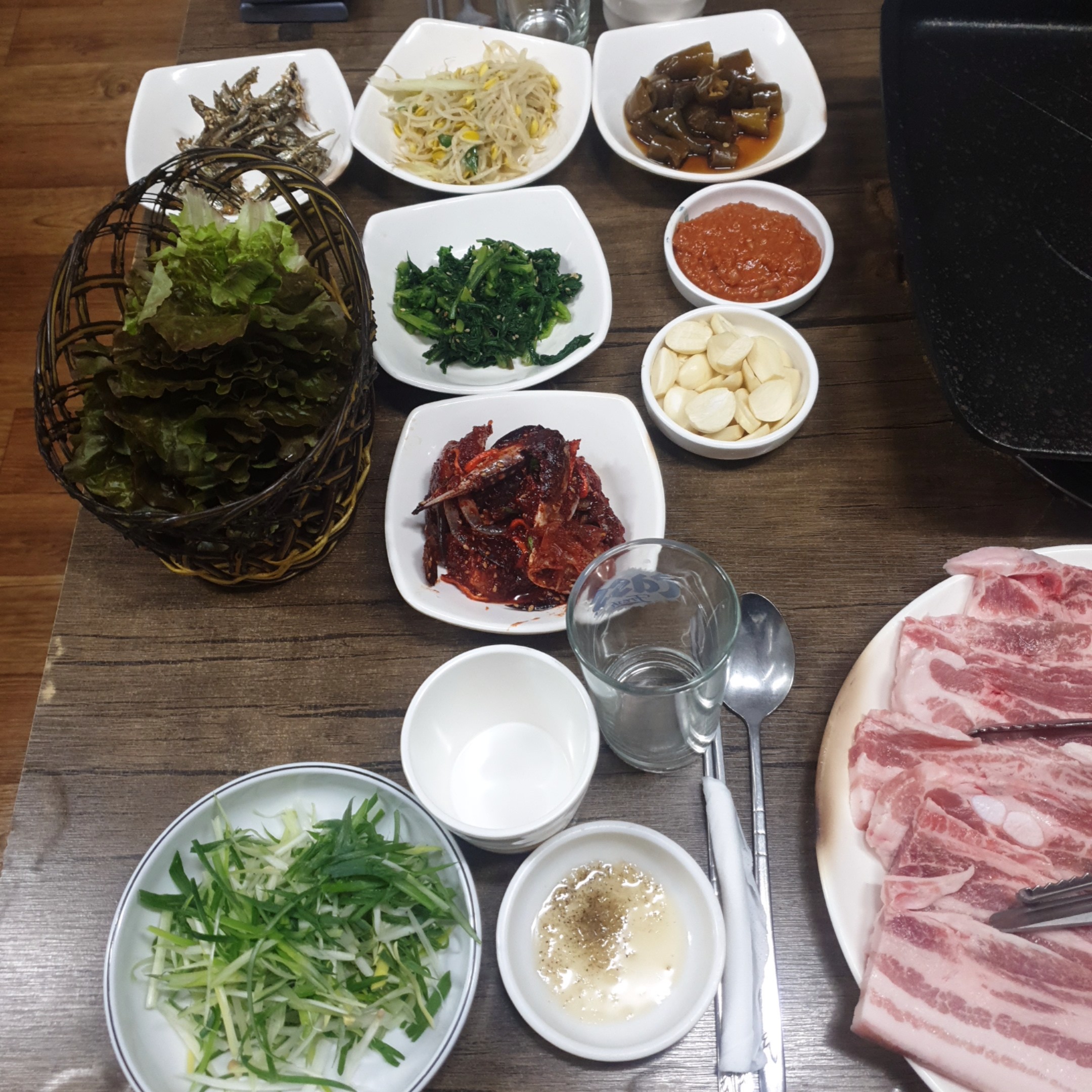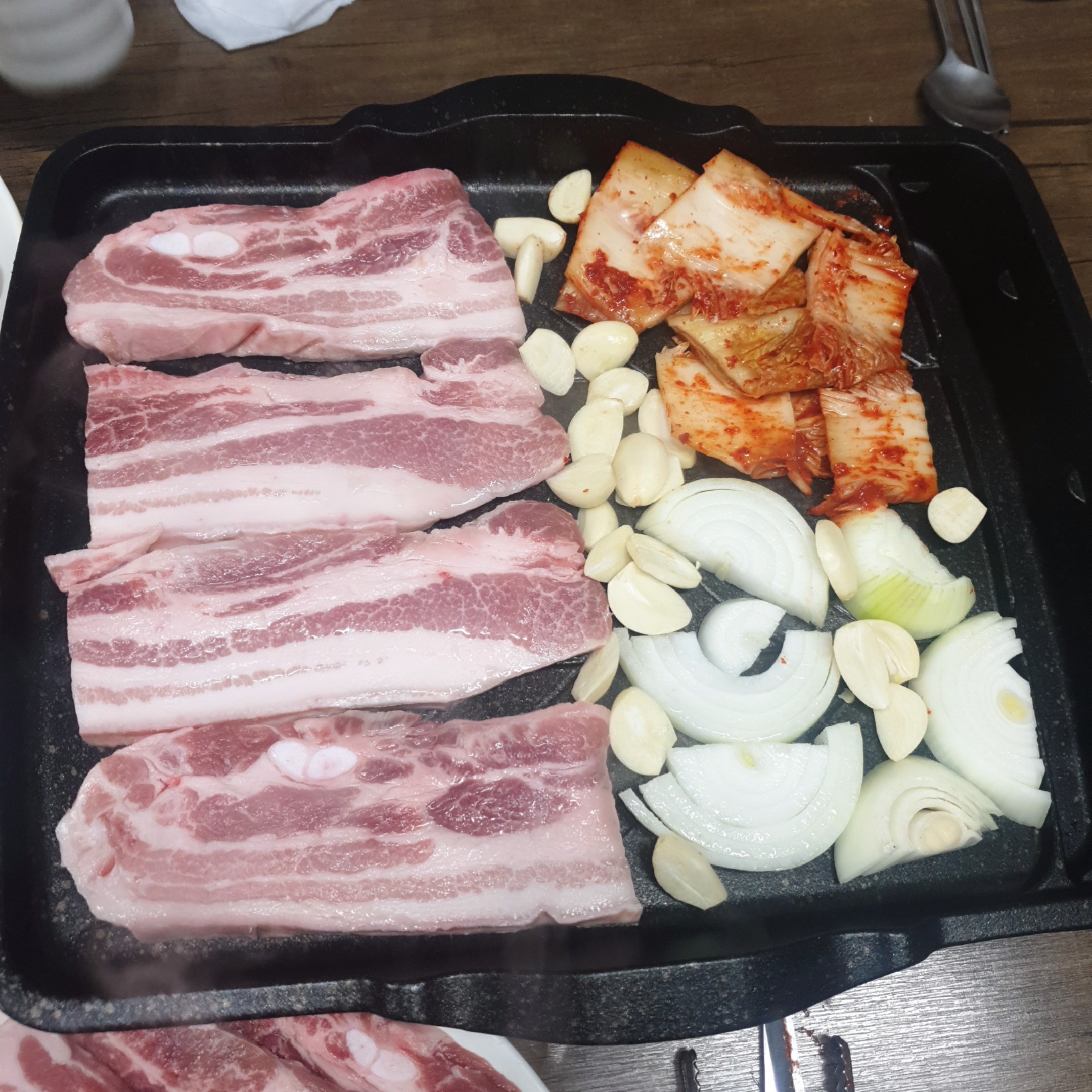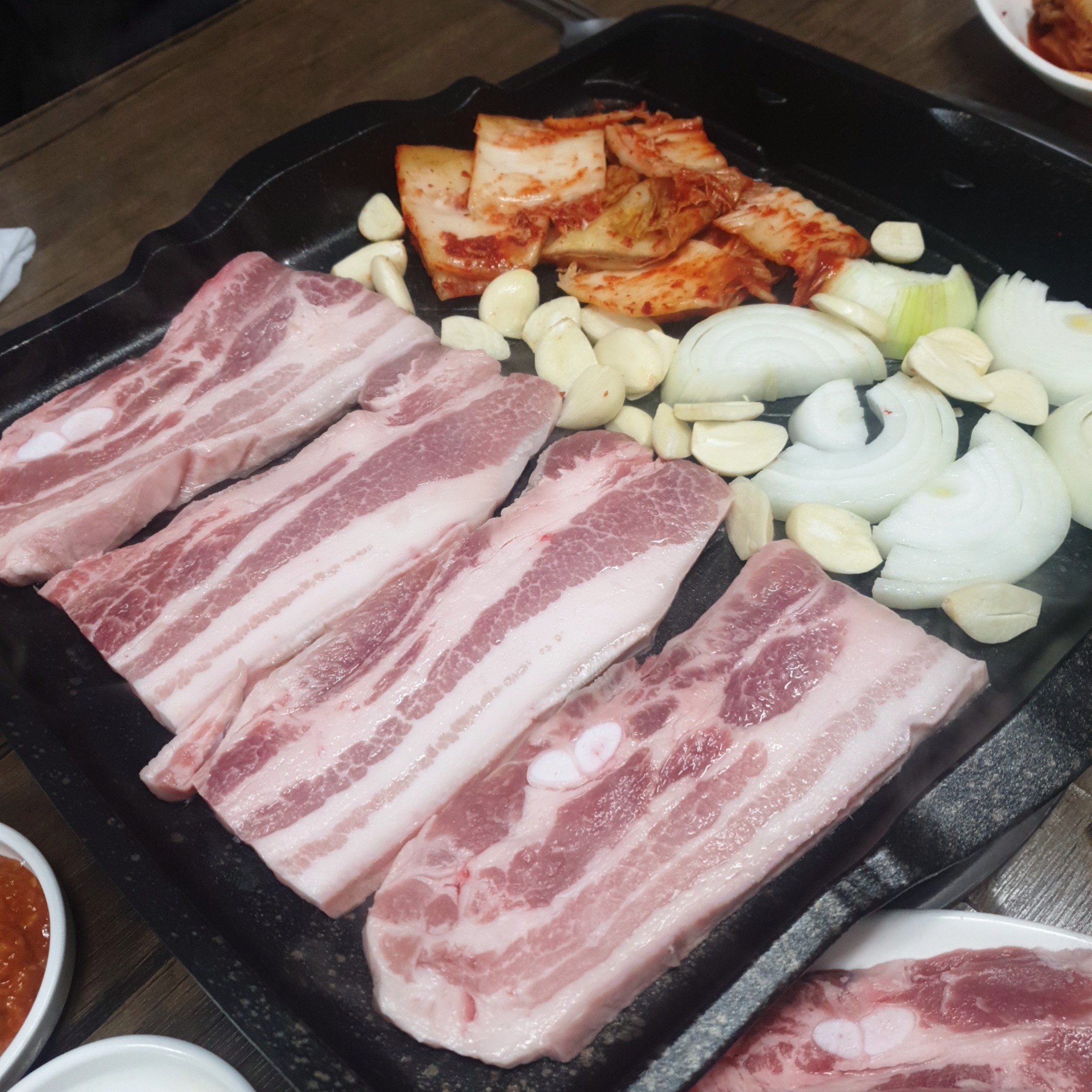 그냥 먹어도 맛있고 불판에 올려서 살짝 구워서 고기랑 같이 먹어도 맛있었습니다.