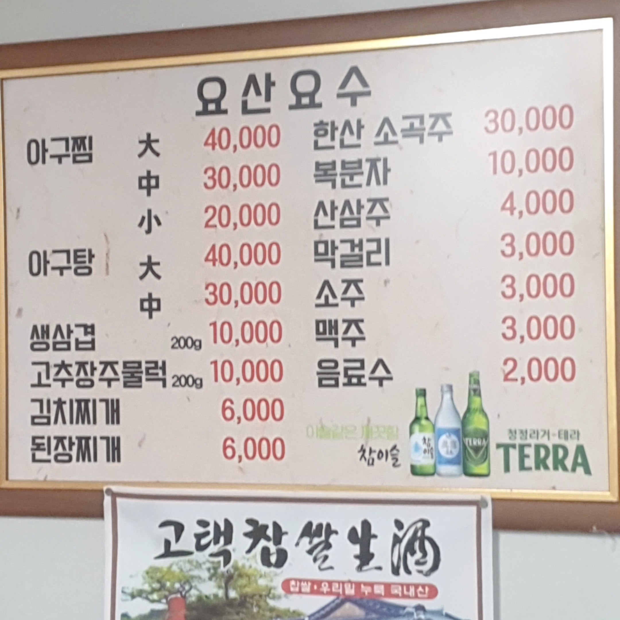 요산요수 메뉴입니다.