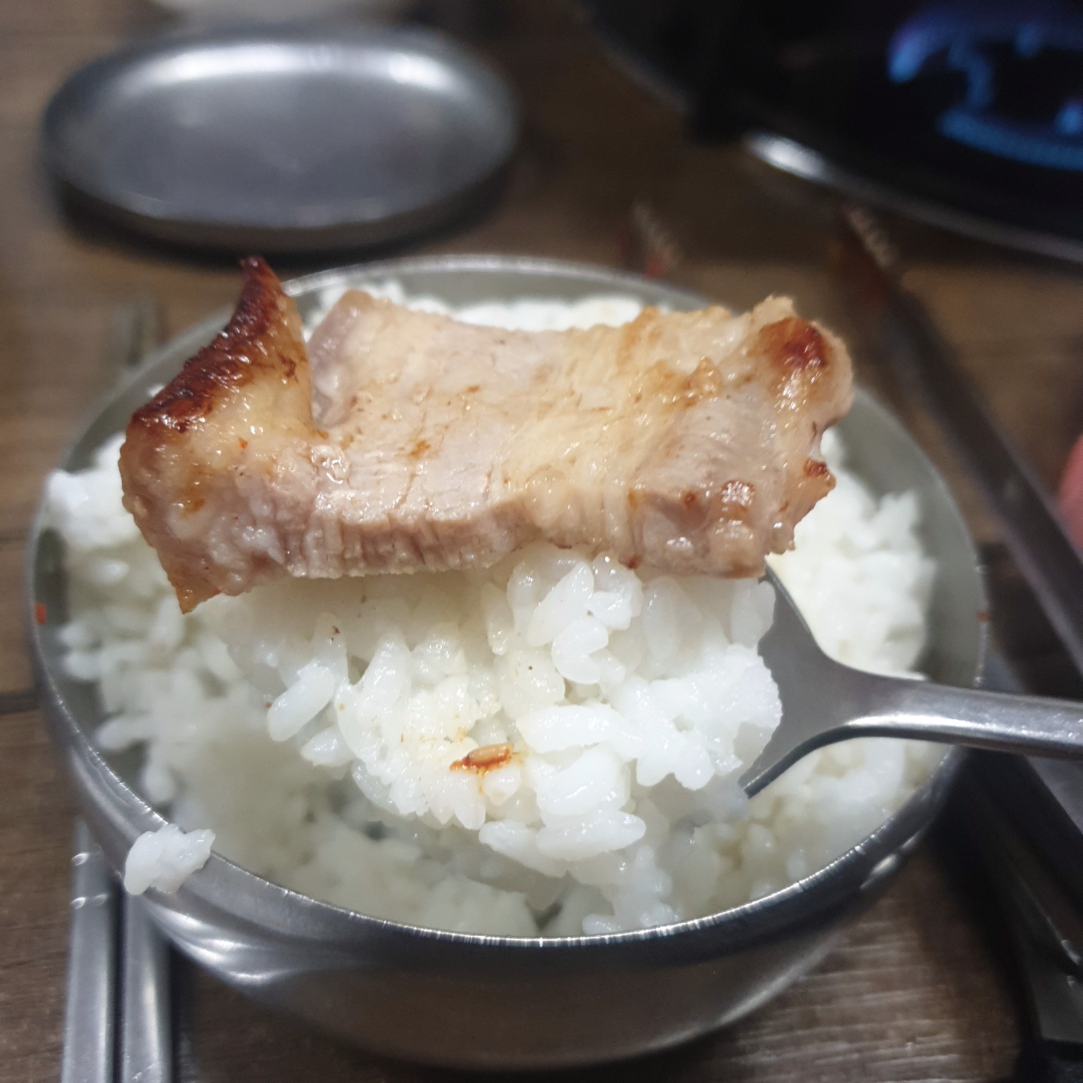 불판이 좋으니 밥을 좀 누룽밥까지 태워도 전혀 달라붙지 않았습니다. 그래서 누룽지같은 밥을 불판 박박 안긁어도 부드럽게 떠먹을 수 있었달까요?