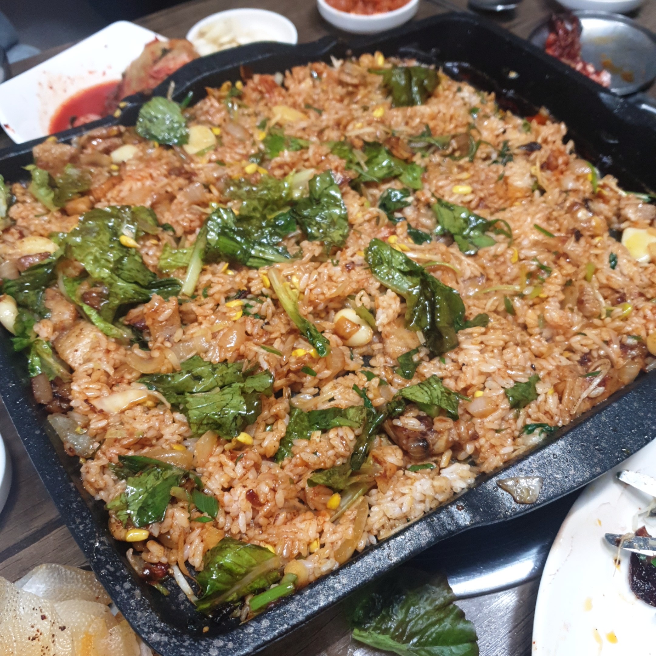 쌀밥 시켰을떄도 아주 꾹꾹 눌러서 가득 채워주신다 느껴졌는데, 그 밥을 불판에 구우니 양이 어마어마해진 ㅋㅋ