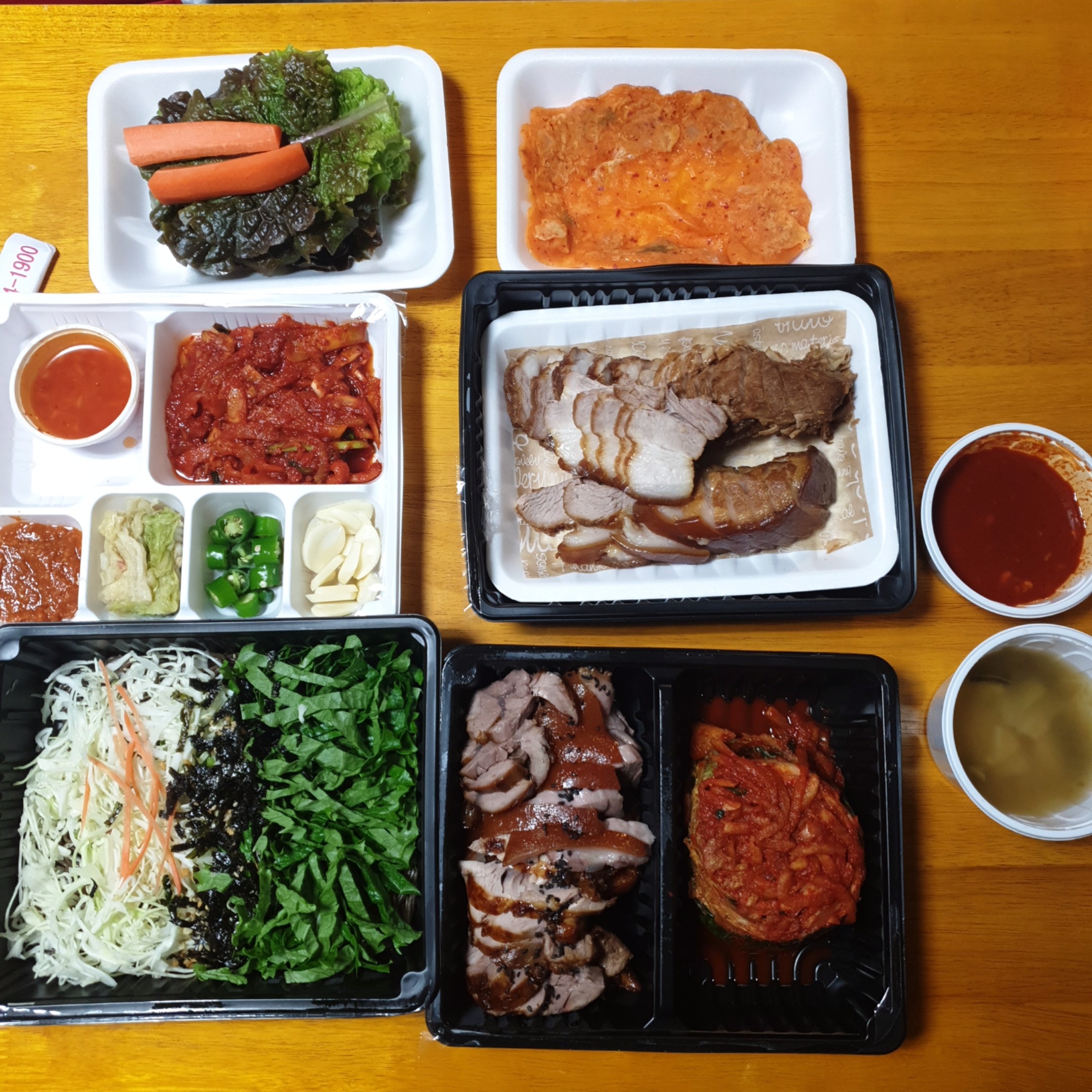 아주 푸짐했습니다. 저는 뜯기 전에 저기 족발들어있는 곳에 보쌈까지 함께 들어있나? 했는데 따로 들어있더라고요.