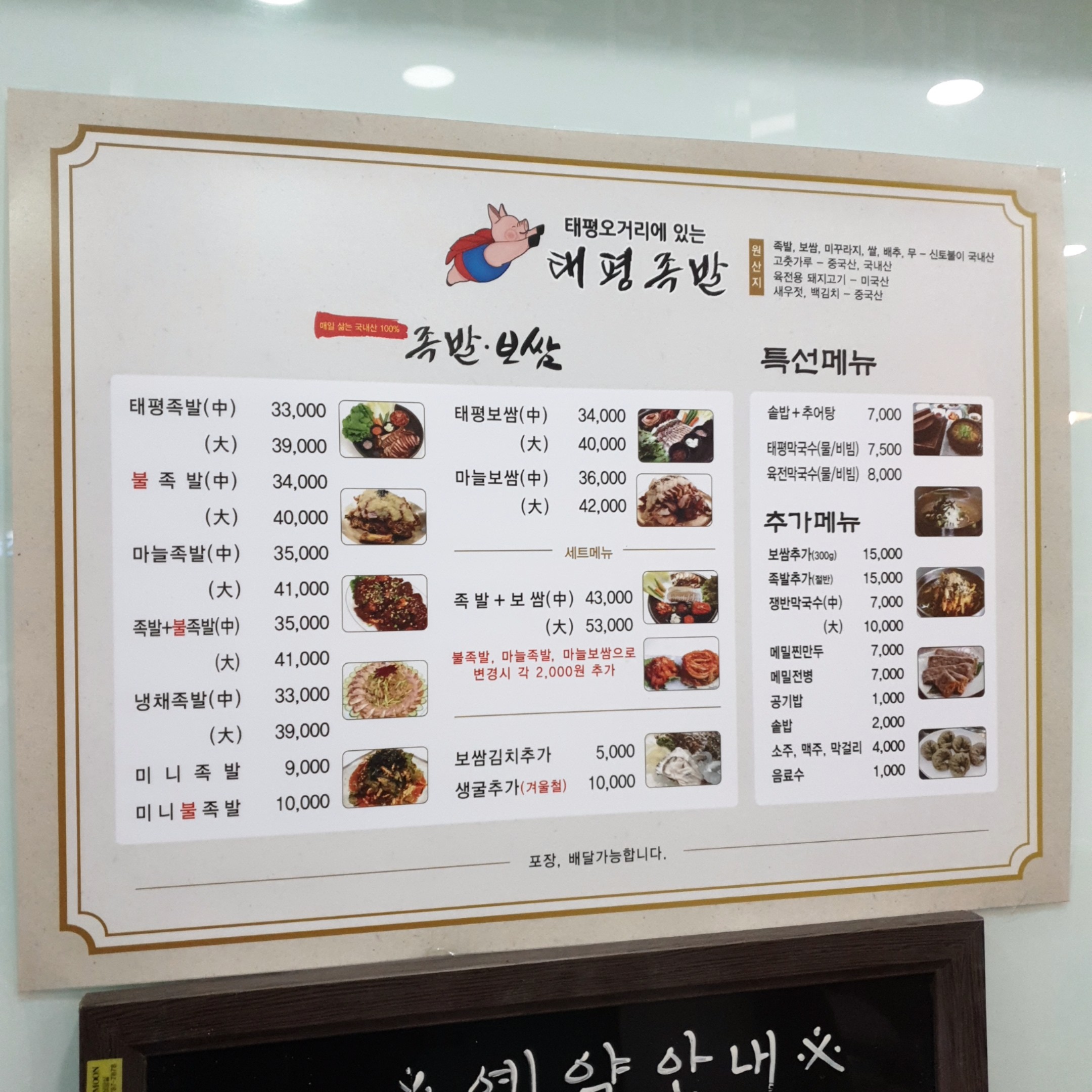 메뉴판 밑에 '예약안내'라는 게시판이 있는데, 족발집에 예약이 있는건 처음 본 것 같습니다.ㅎ