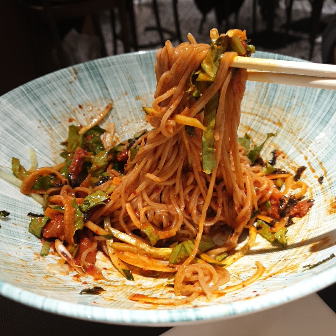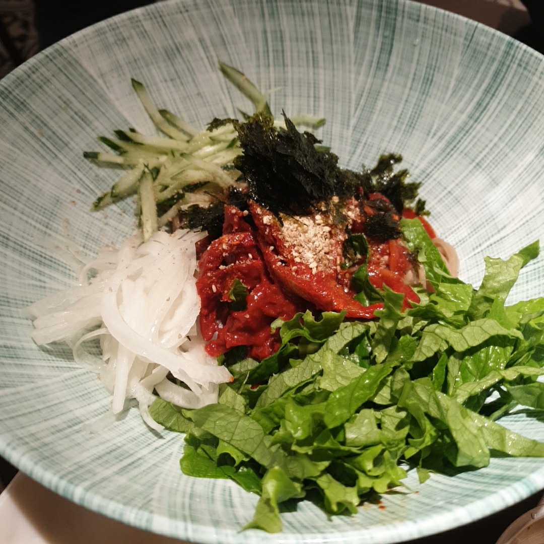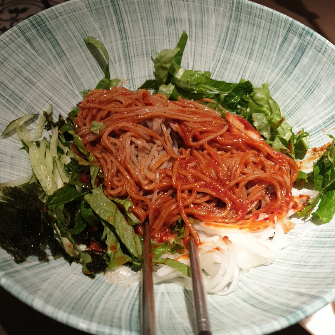 들어있는 재료들인 무, 오이 등의 아삭아삭한 식감이 맛을 더해줘서 좋았고, 야채들의 신선함이 막국수 소스와 면과 잘 어우러지는 그런 국수였습니다.