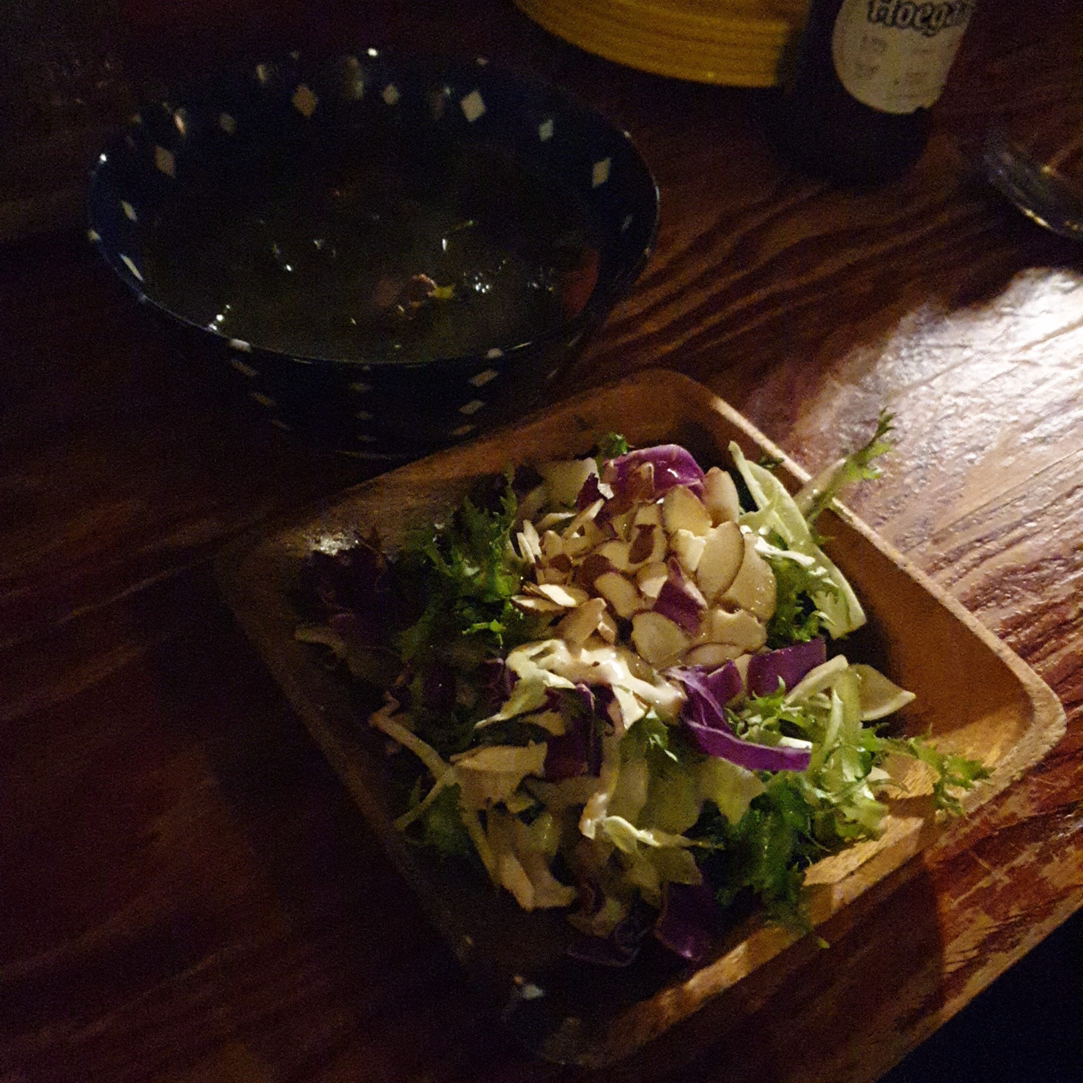 우선 샐러드는 상큼한 소스와 고소한 아몬드까지 해서, 비교적 느끼한 메인안주류들 먹다가 입을 환기시킬 때 좋았습니다.