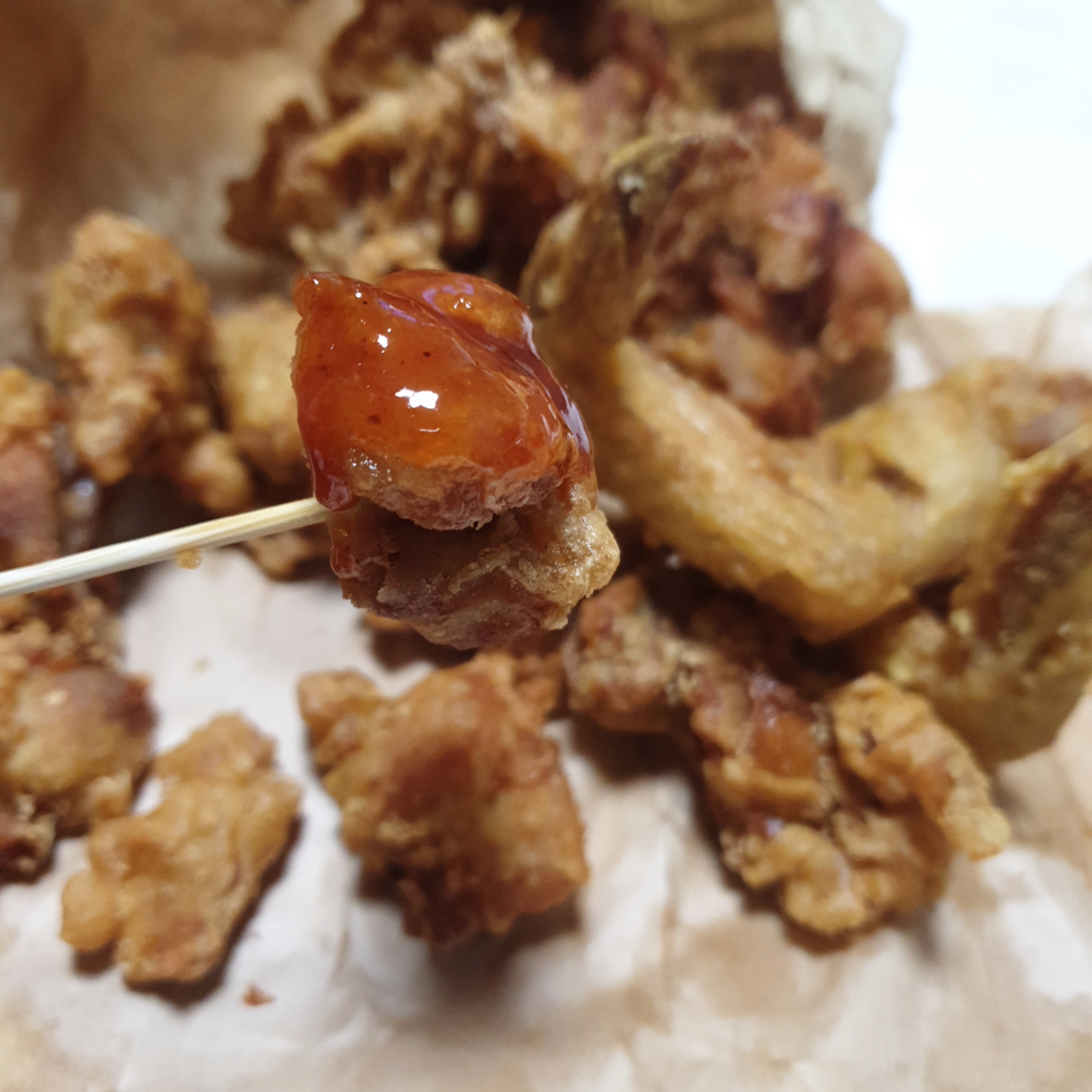 순살치킨 양념 살짝 찍어서 먹어봤습니다.