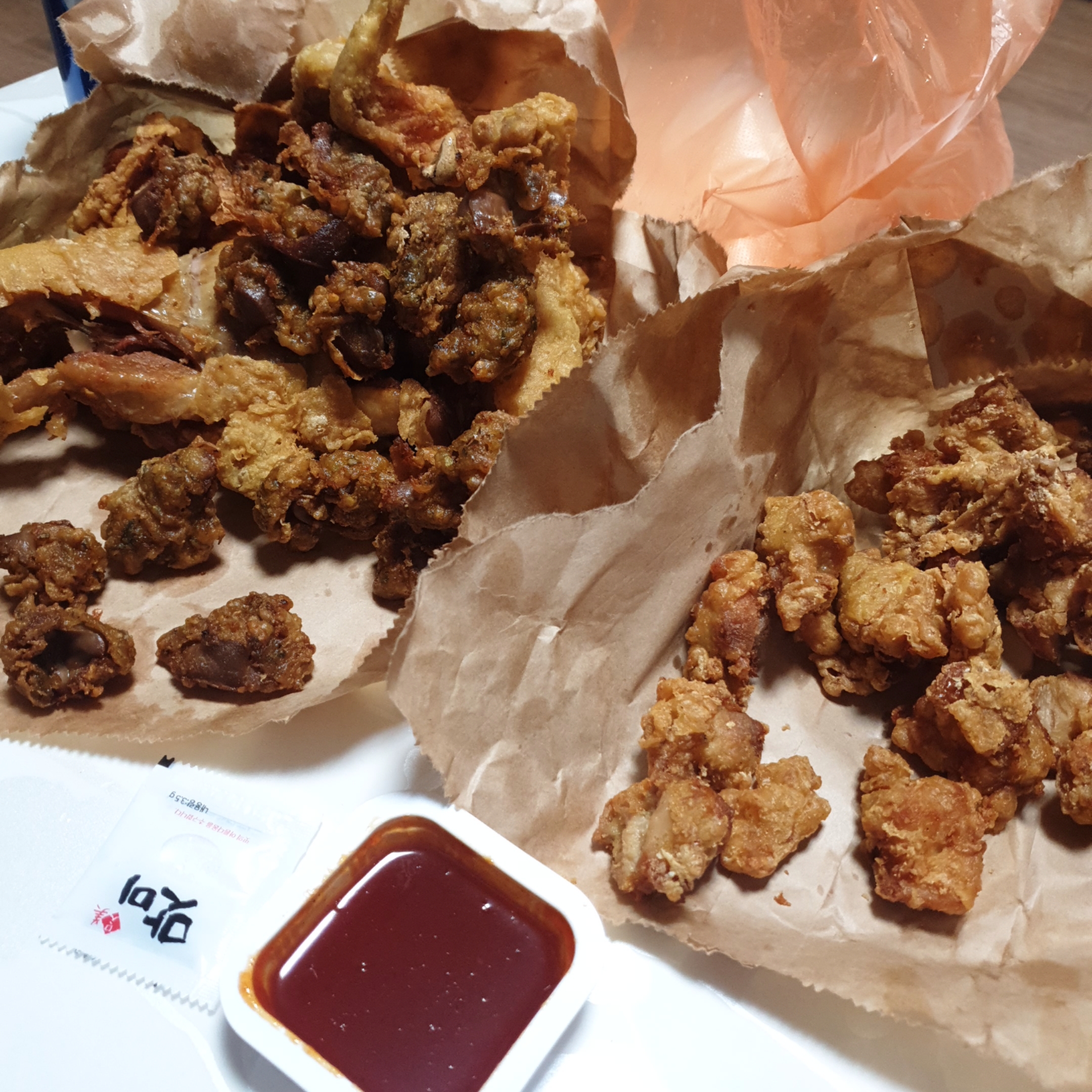 통닭 1마리에 똥집까지 엄청 푸짐하게 먹었습니다.