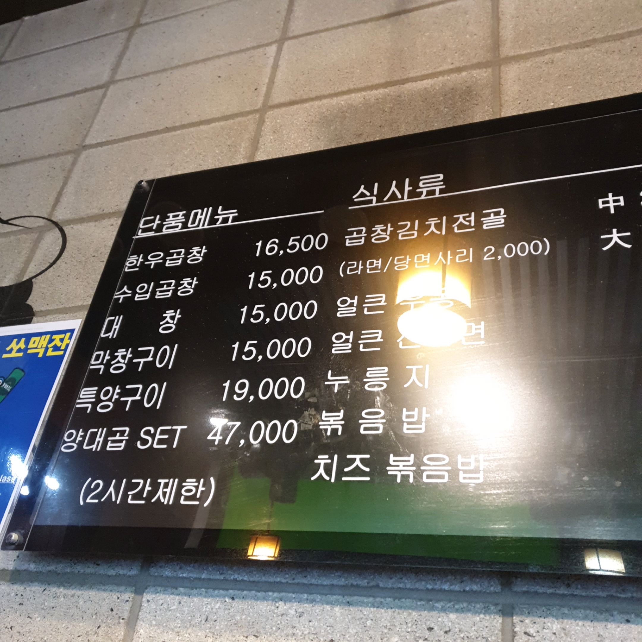 한우곱창도 있고, 대창 막창 등 세트메뉴가 있고,