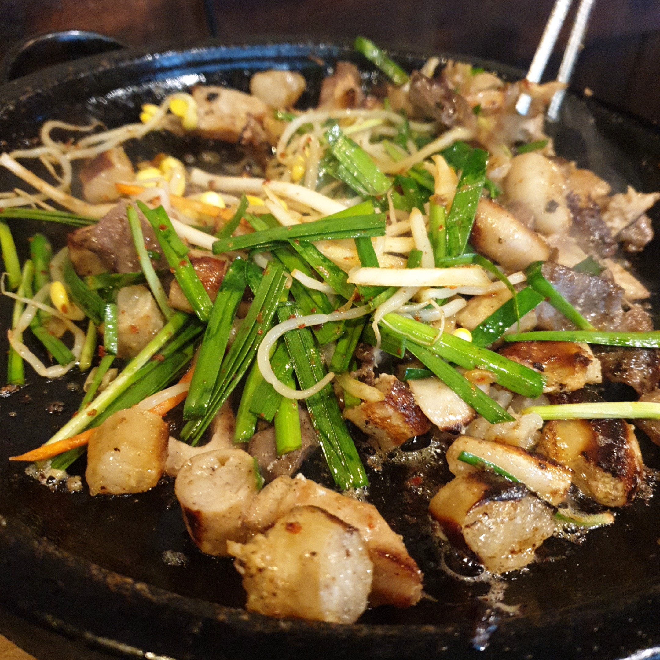 그 아래에 보이는 마늘장아찌? 가 전 좋았습니다. 양곱창이 느끼해질 쯤 하나 먹어주면 느끼함이 싹 가라앉는게 아주 딱이었습니다.