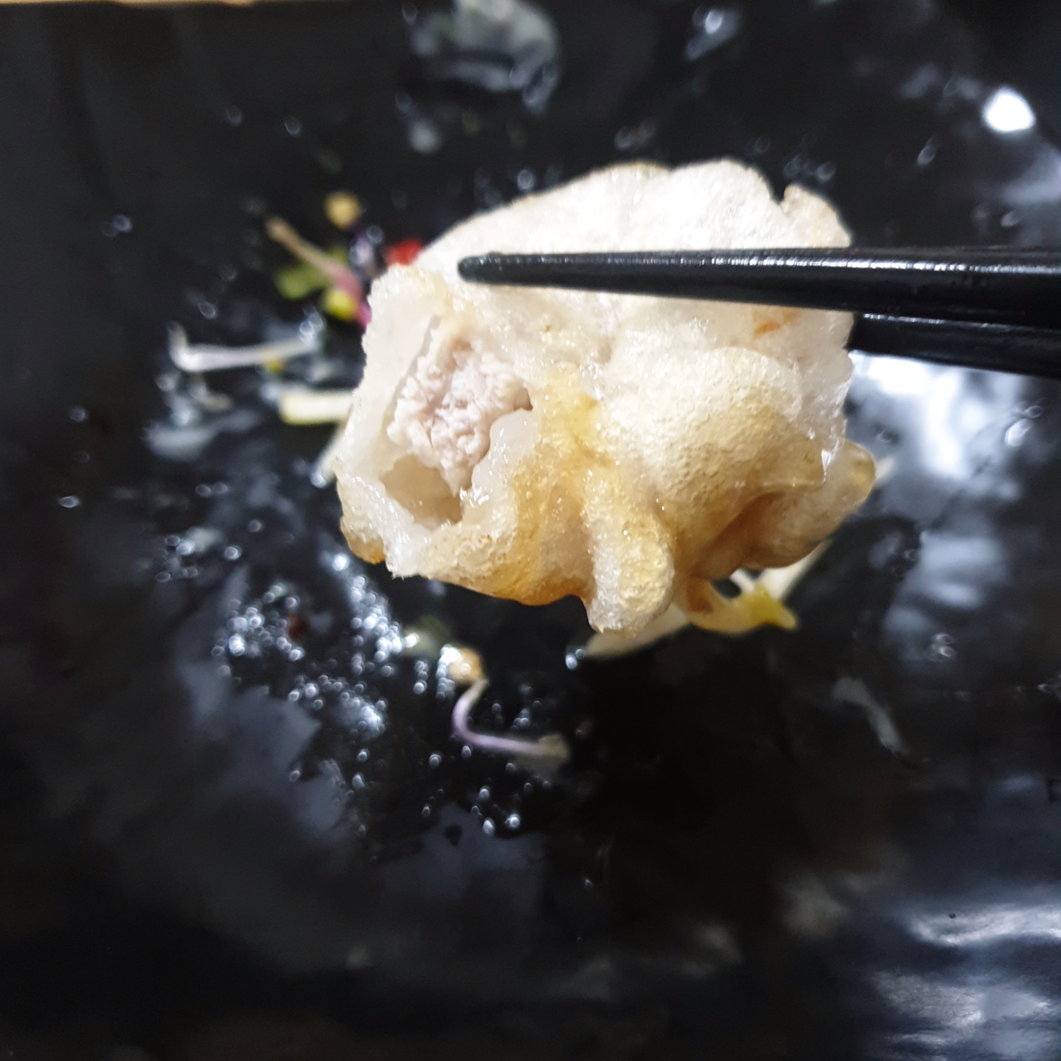 쫀득바삭한 튀김옷과 부드러운 돼지고기.