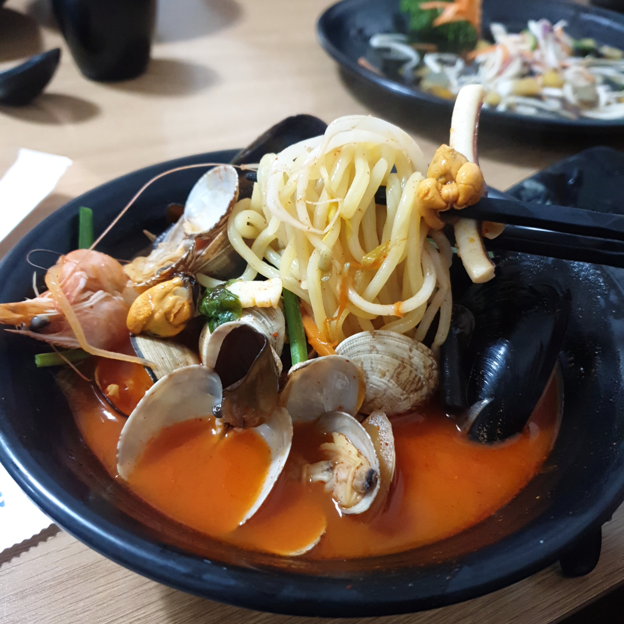 홍합, 바지락, 물총조개, 오징어, 새우 등이 저 그릇 안에 꽉 차 있었고, 해산물의 신선함은 서두에 말씀드렸듯 입구에서 보이는 수조가 다 설명해준다고 생각합니다.