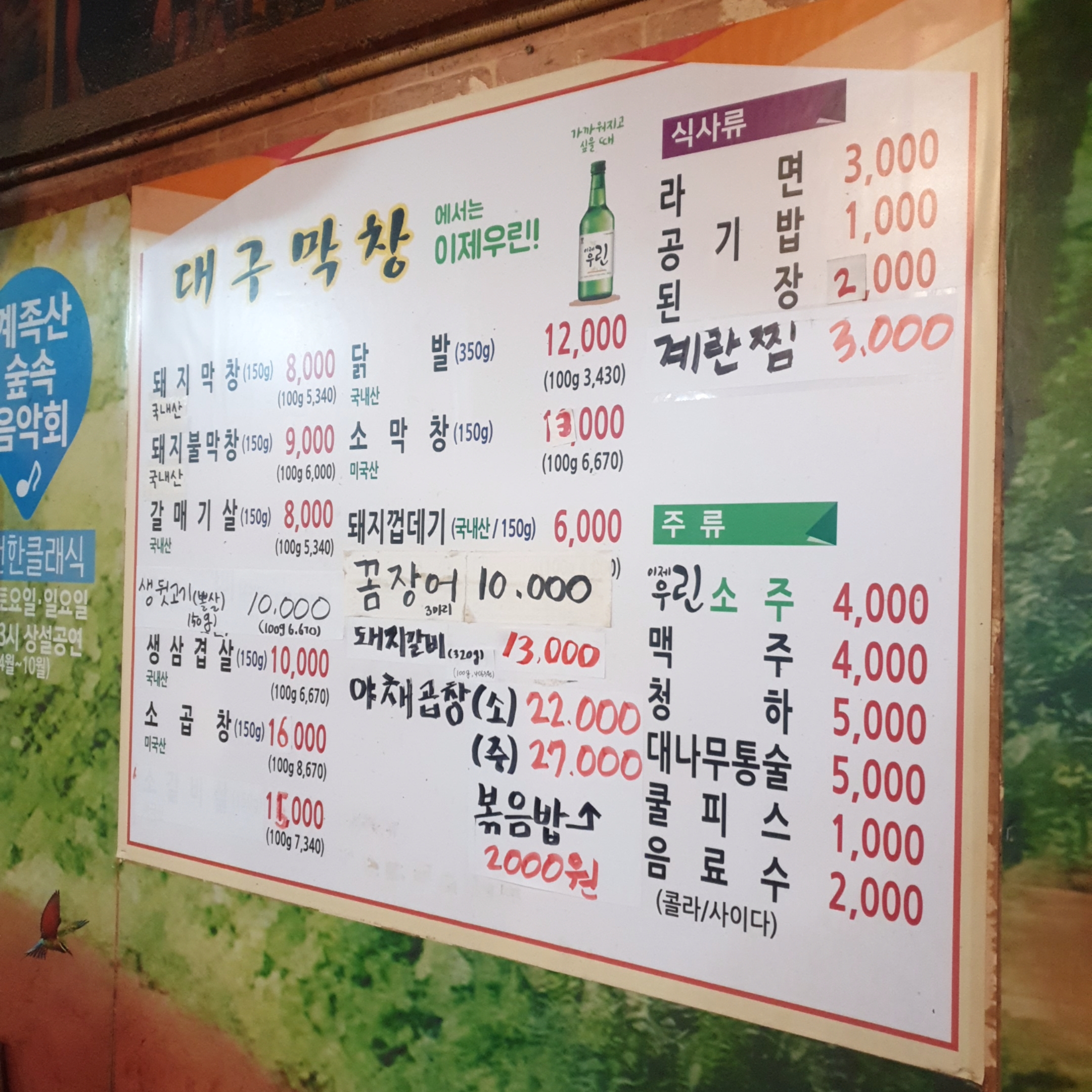 저렴한 가격이 요기 한민시장에 있는 막창집들의 특징이죠.