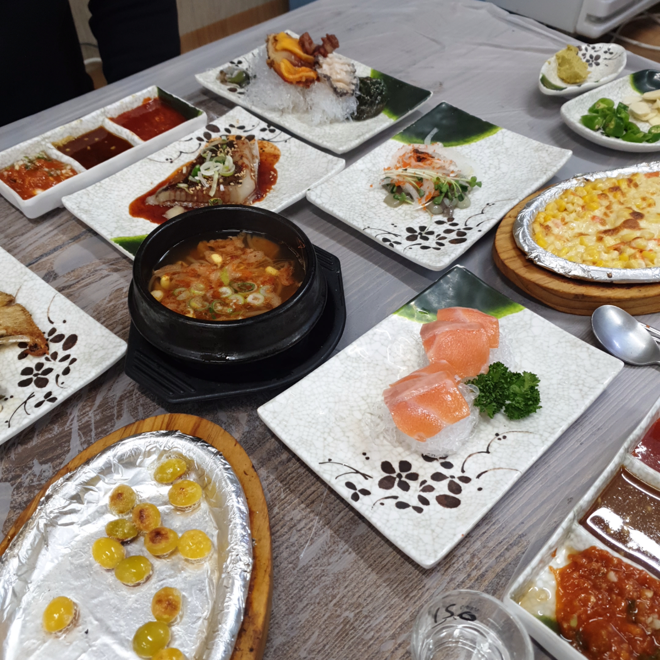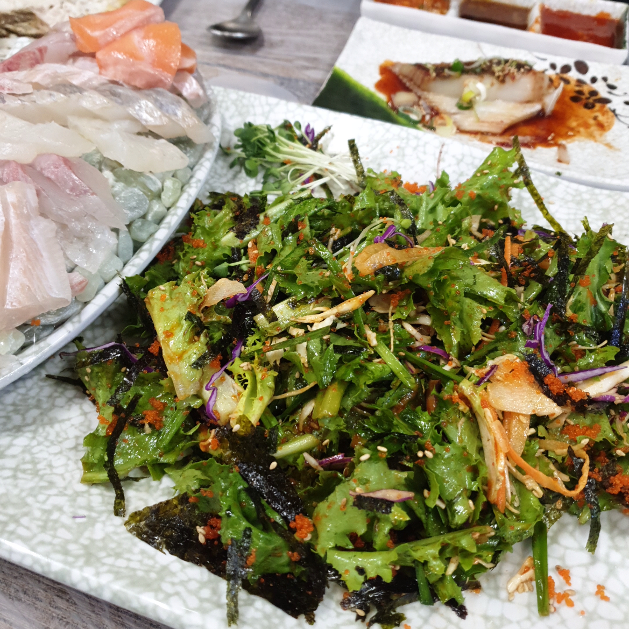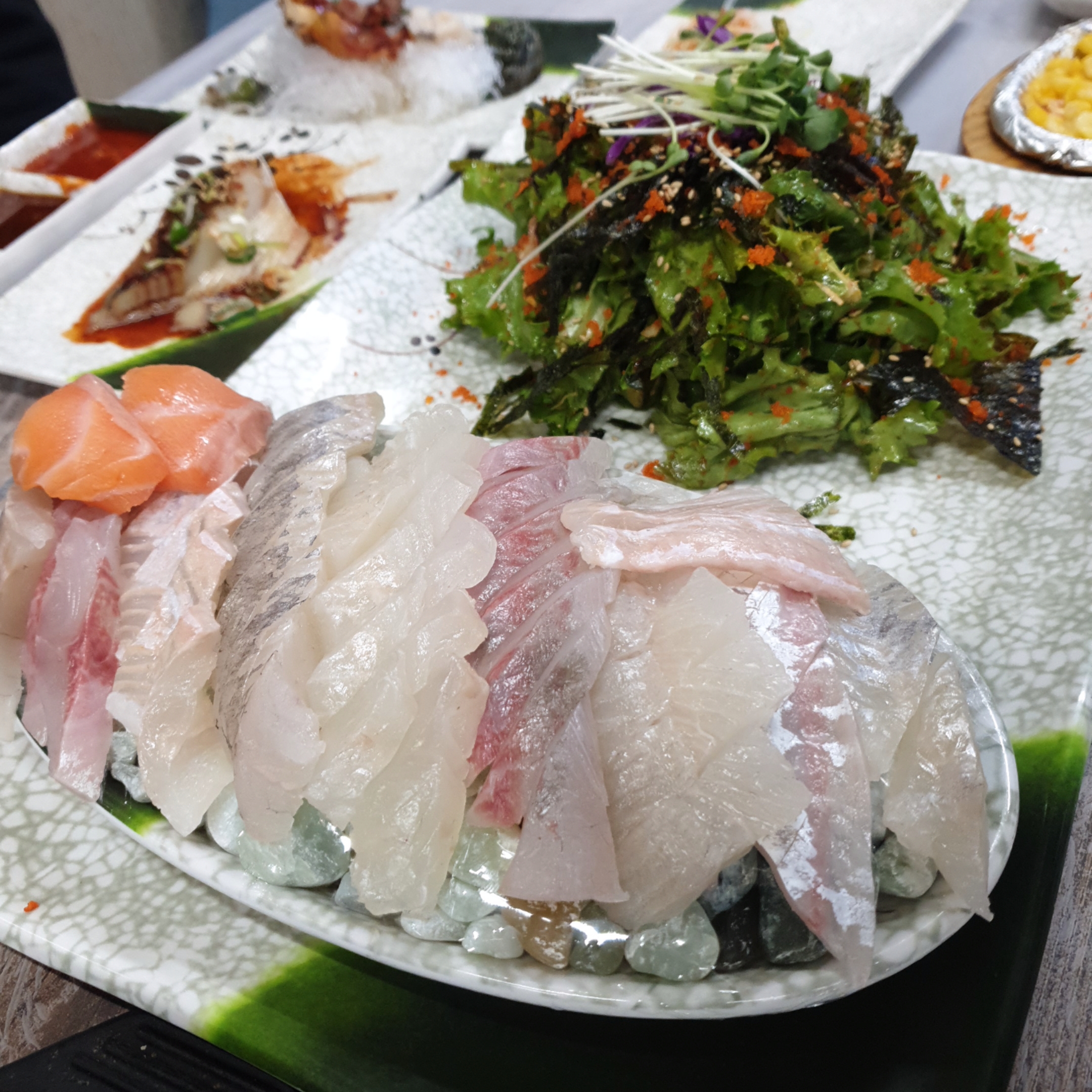 쫀득하고 두터운 회와, 앞에 나오는 무수히 많은 밑반찬, 그리고 곁들여 먹을 야채가 꼬소름하니 맛있었던 횟집 맛집.