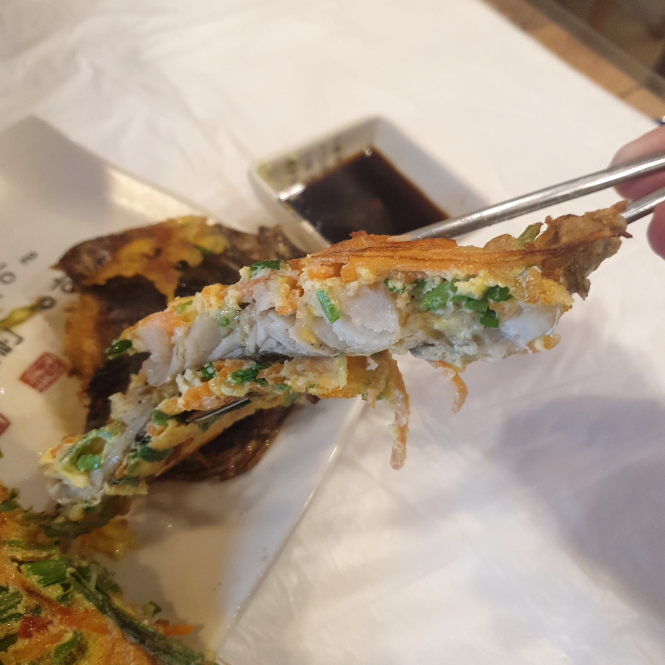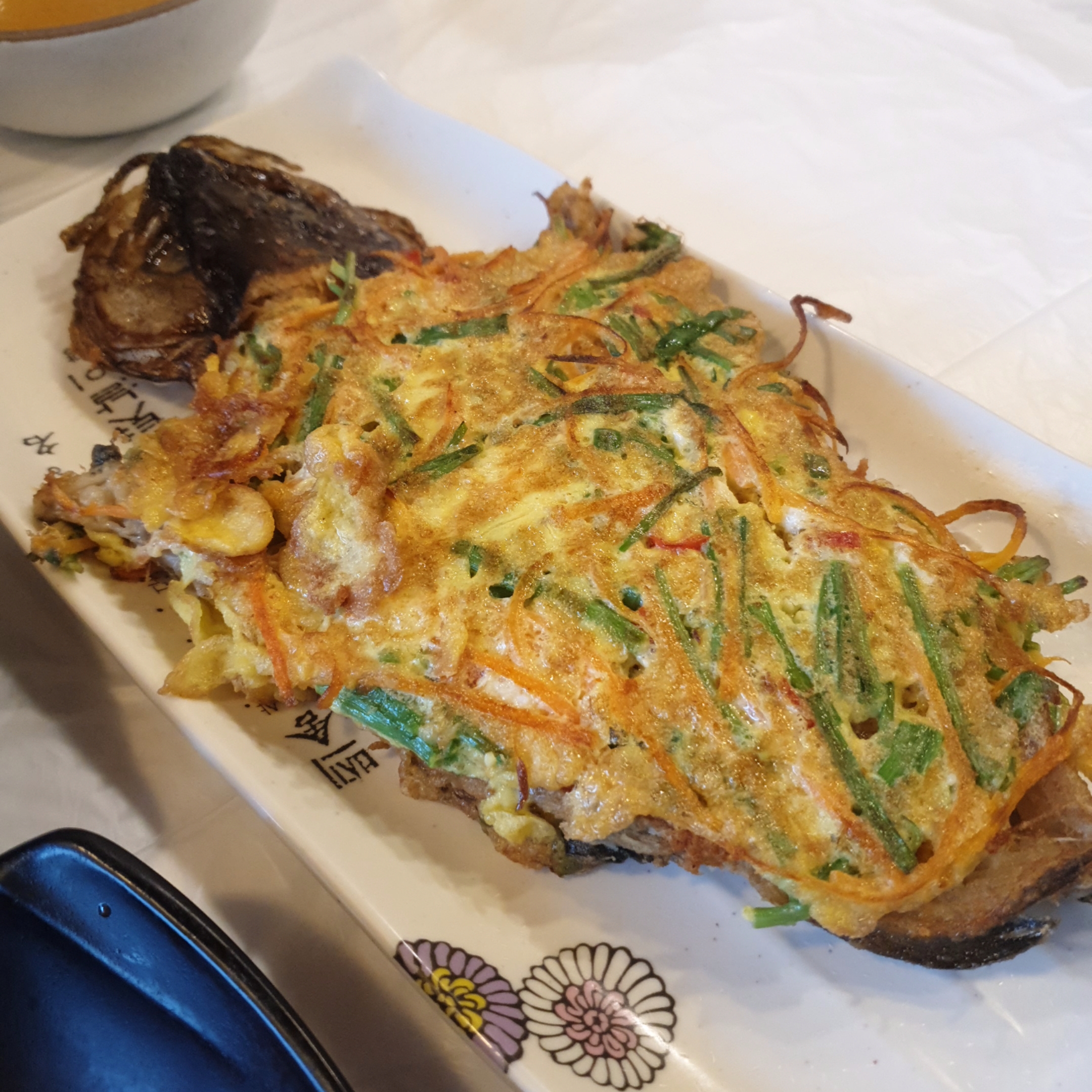 코다리 살 들어간 전 정도로 상상해봤는데, 코다리 뼈를 발라내고 펼친 뒤 계란옷과 각종 야채들과 함께 지져낸 형태더라구요.