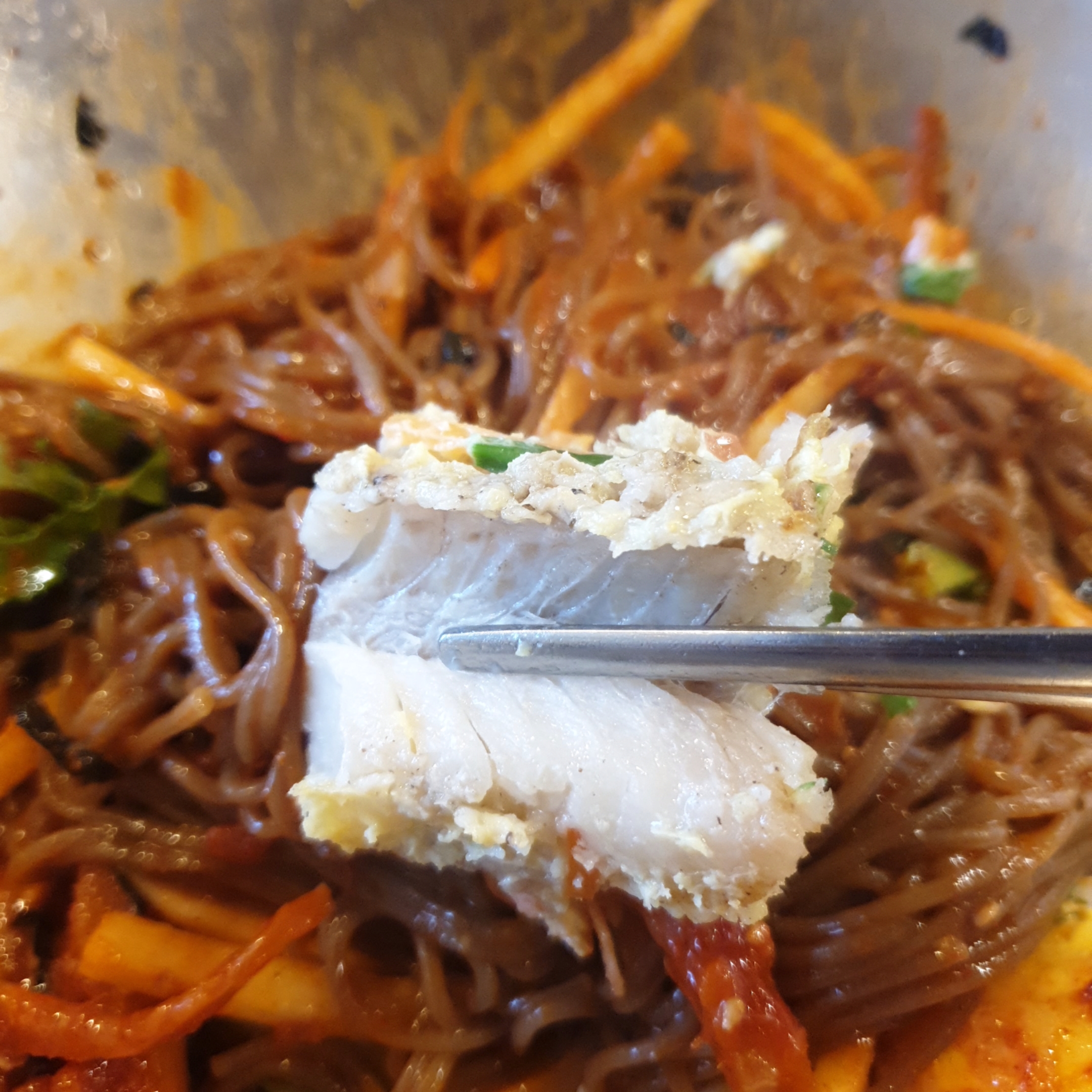 뭐니뭐니해도 같이 들어있는 코다리가 일품입니다. 양념에 잘 절여진 코다리 맛 즐기고싶으신 분들은 꼭 비빔막국수로 드셔보세요~