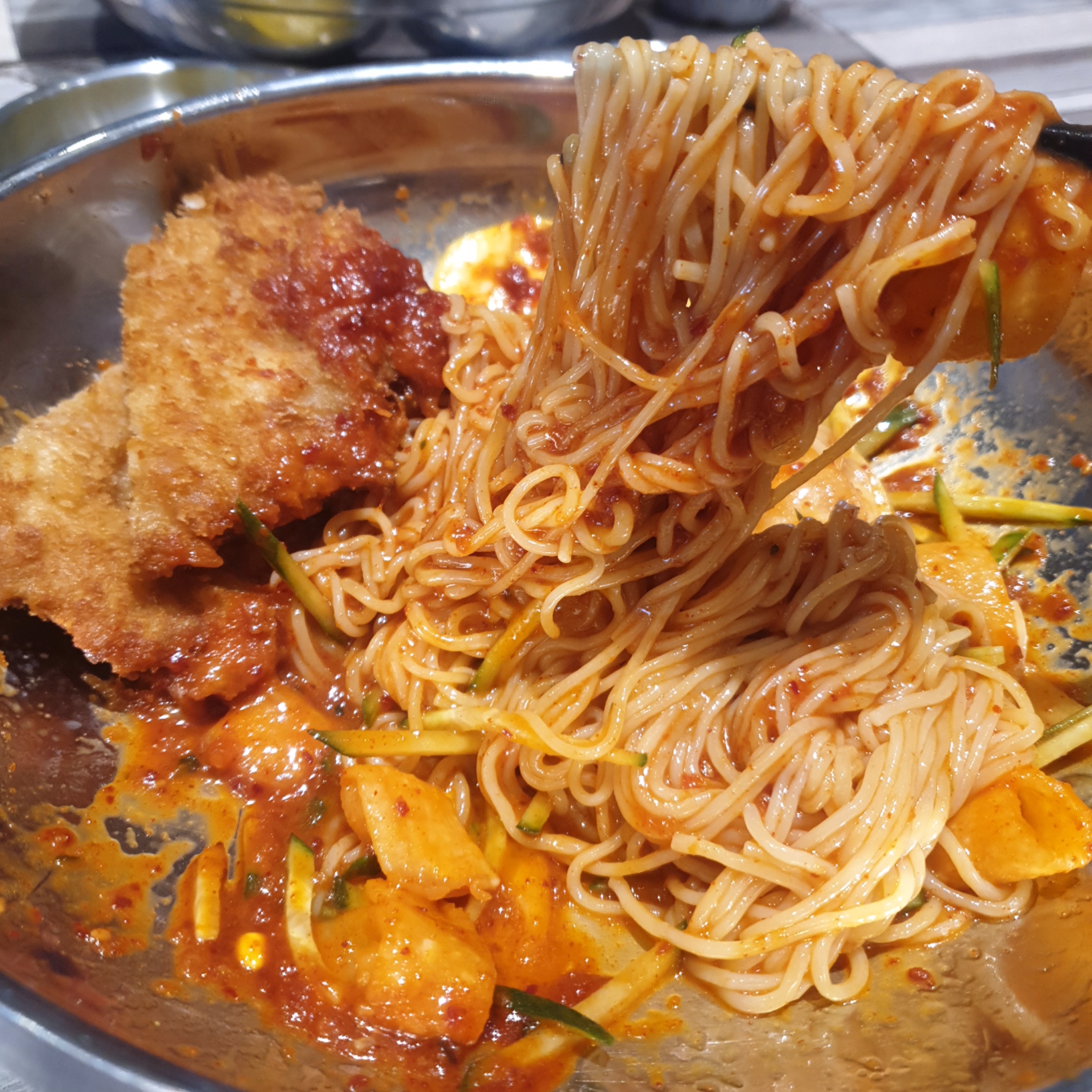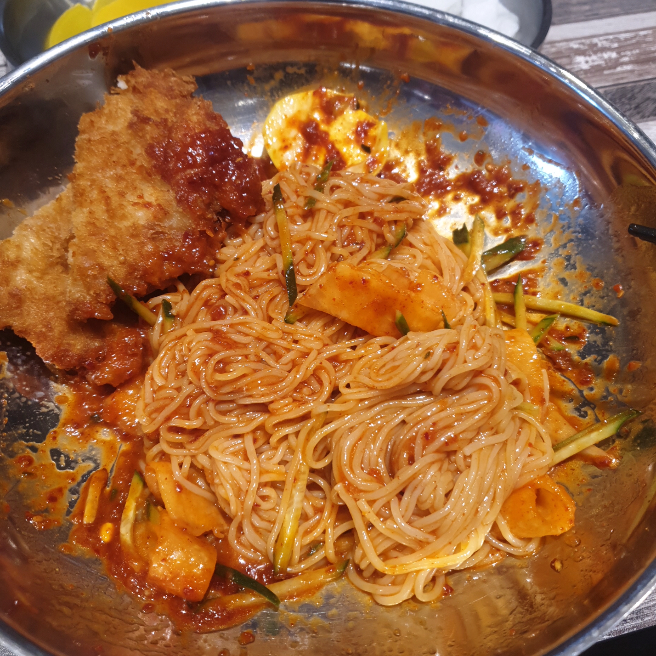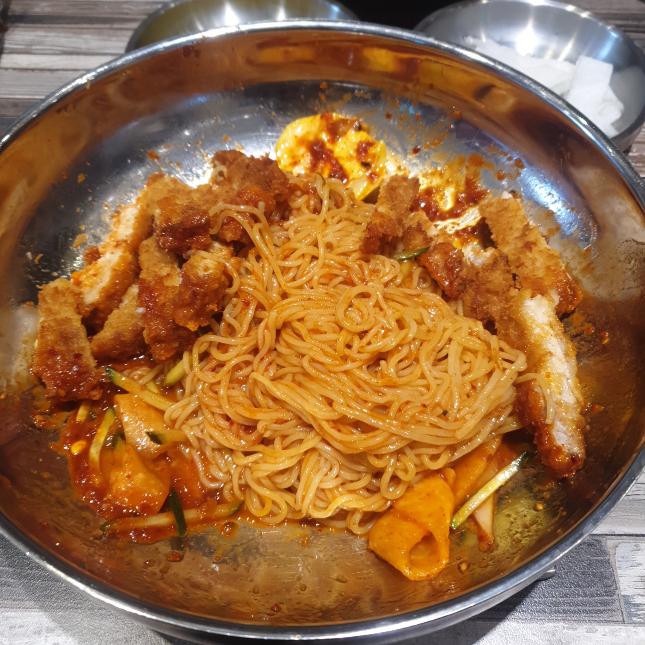 저는 '돈까스비빔밀면' 시켰습니다.