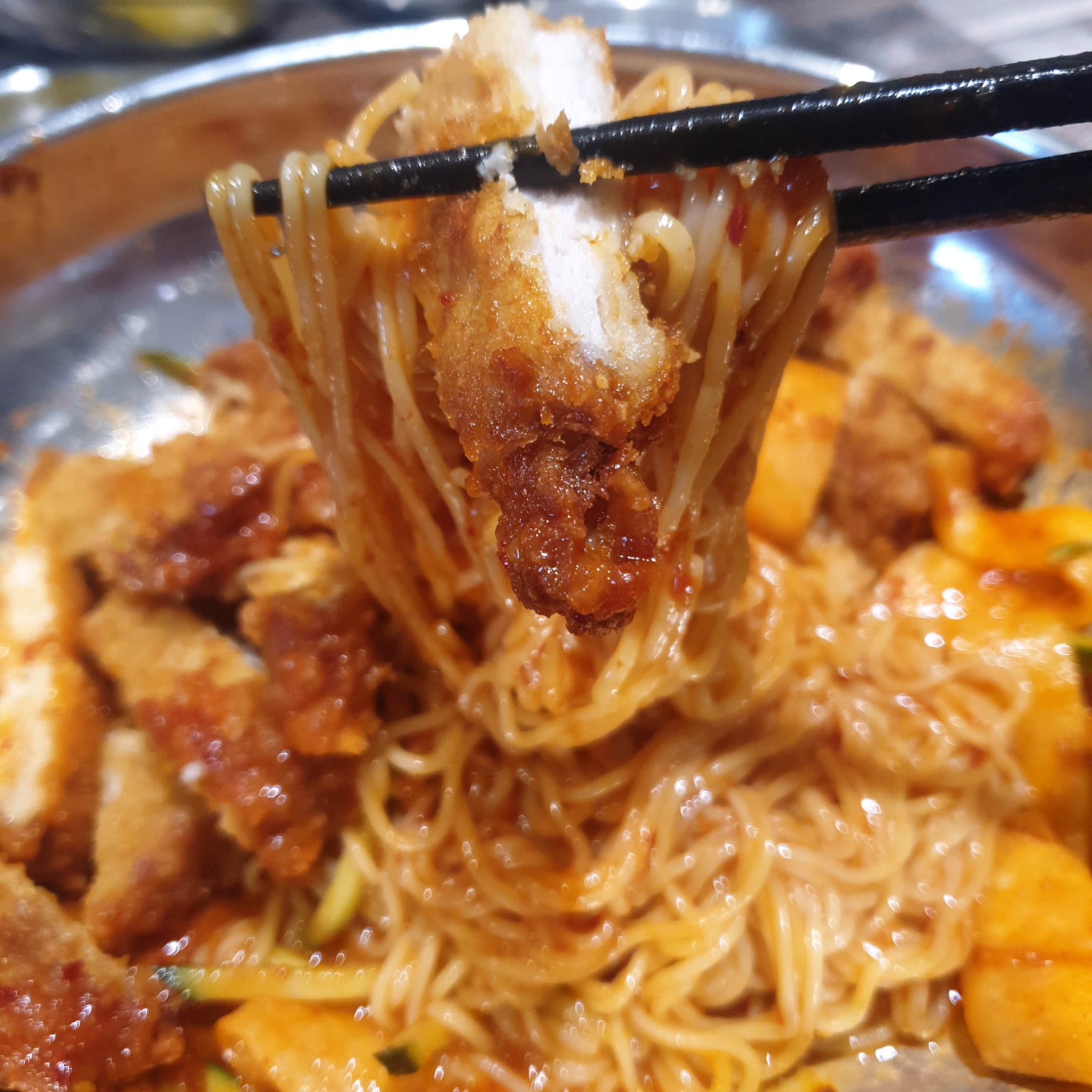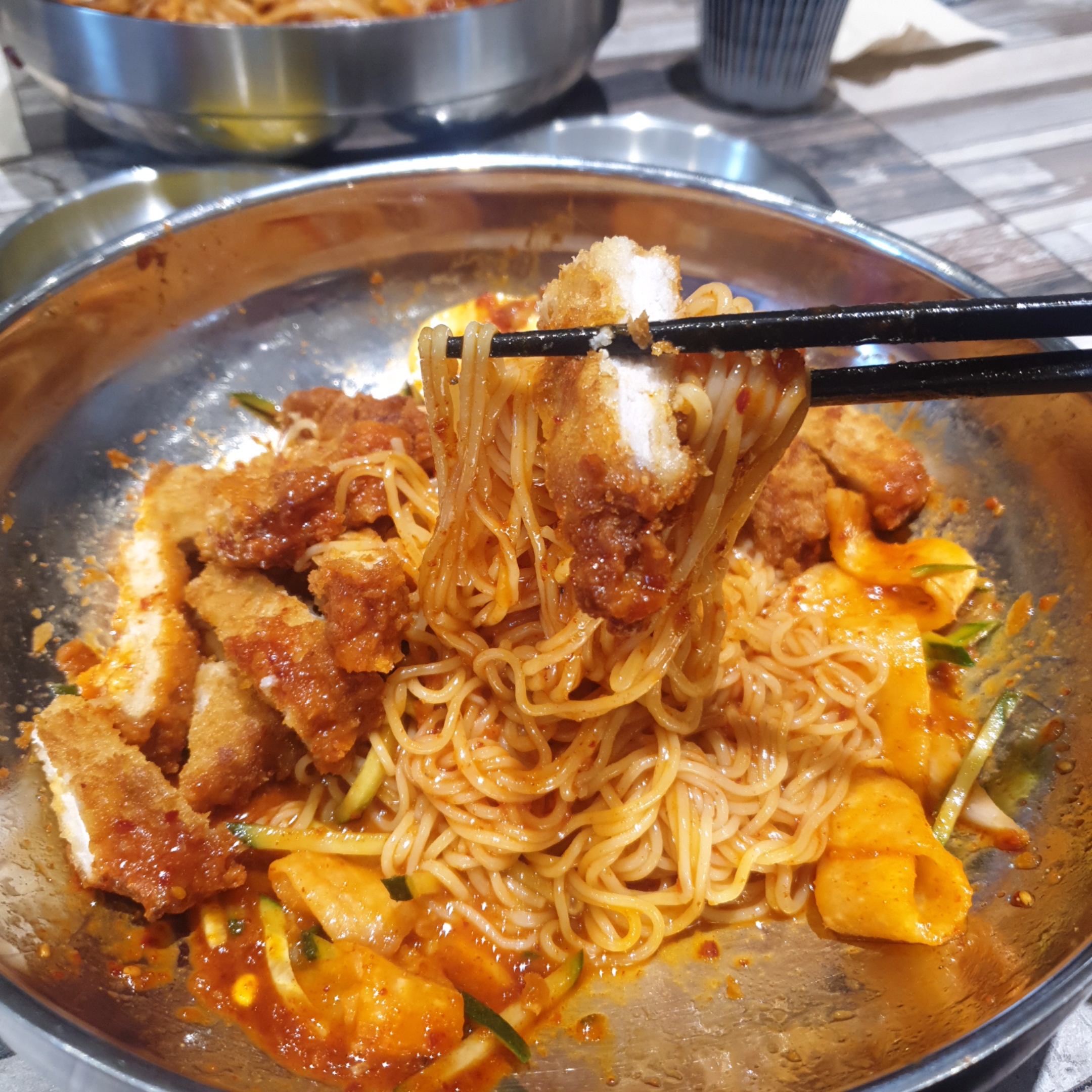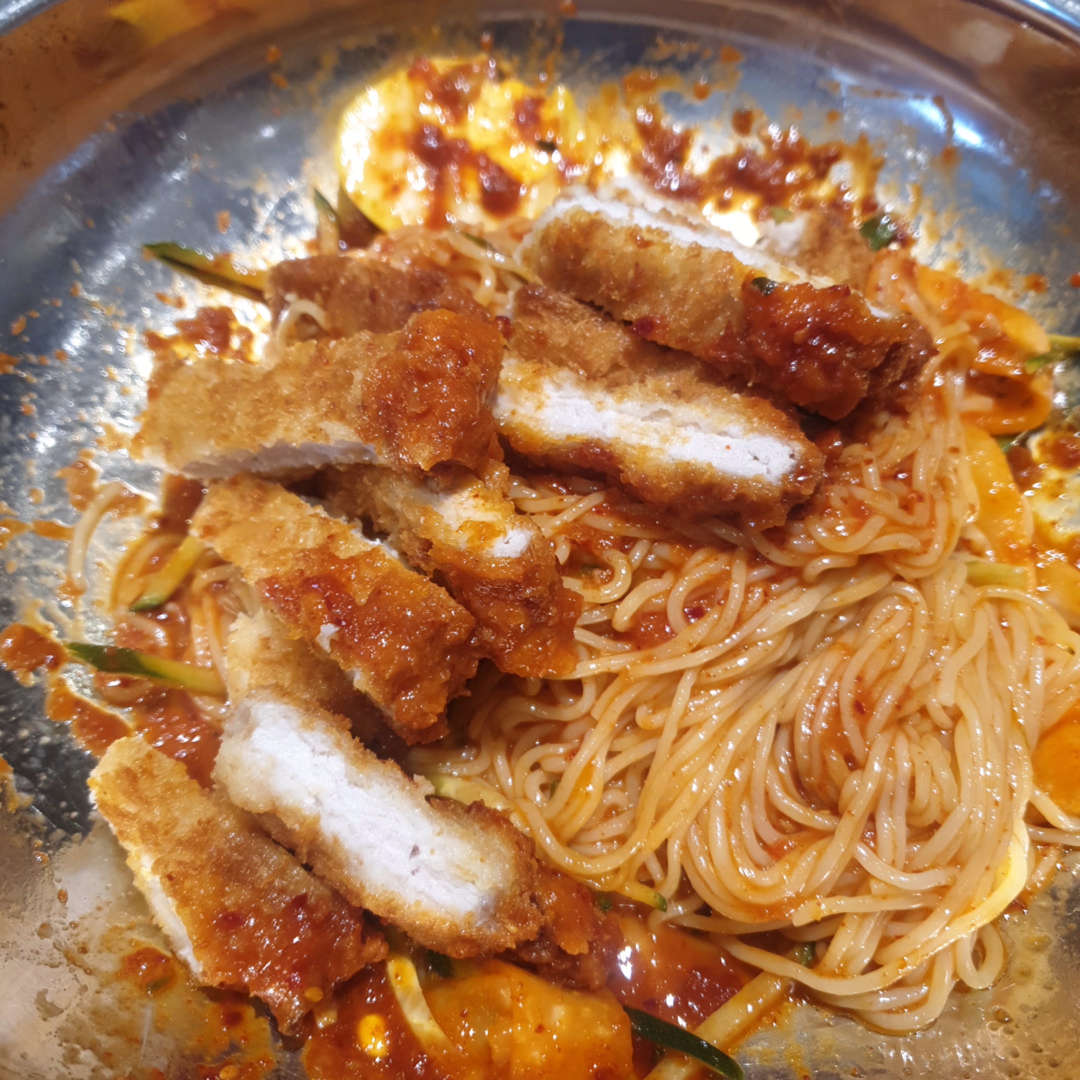 저는 '돈까스비빔밀면' 시켰습니다.
